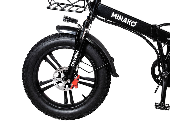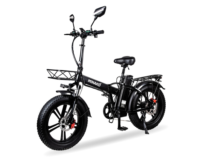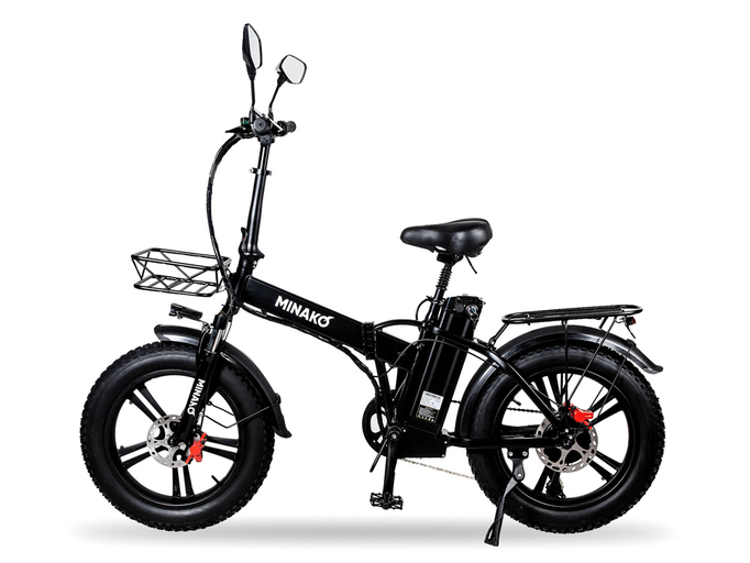 Электрофэтбайк Minako F10 – новая модель велогибрида от компании Minako, которая позволит совместить ежедневные поездки и активный отдых. Универсальный электровелосипед подходит для катания в любое время года и по различным ландшафтам, поездок по бездорожью, лесам и полям, разбитым дорогам. Толстые широкие покрышки фэтбайка отлично себя проявляют на любом дорожном покрытии при правильной регулировке уровня давления в шинах. Рама электровелосипеда изготовлена из алюминиевого сплава и является складной, что существенно облегчает его транспортировку и хранение. Передняя амортизационная вилка в совокупности с амортизирующим подседельным штырем смягчает дорожные неровности, за безопасное и четкое торможение отвечают надежные дисковые механические тормоза. В базовую комплектацию входят задний и небольшой передний багажники, светодиодная оптика (передняя фара, задние стоп-огни и поворотники, полноразмерные крылья, зеркала).