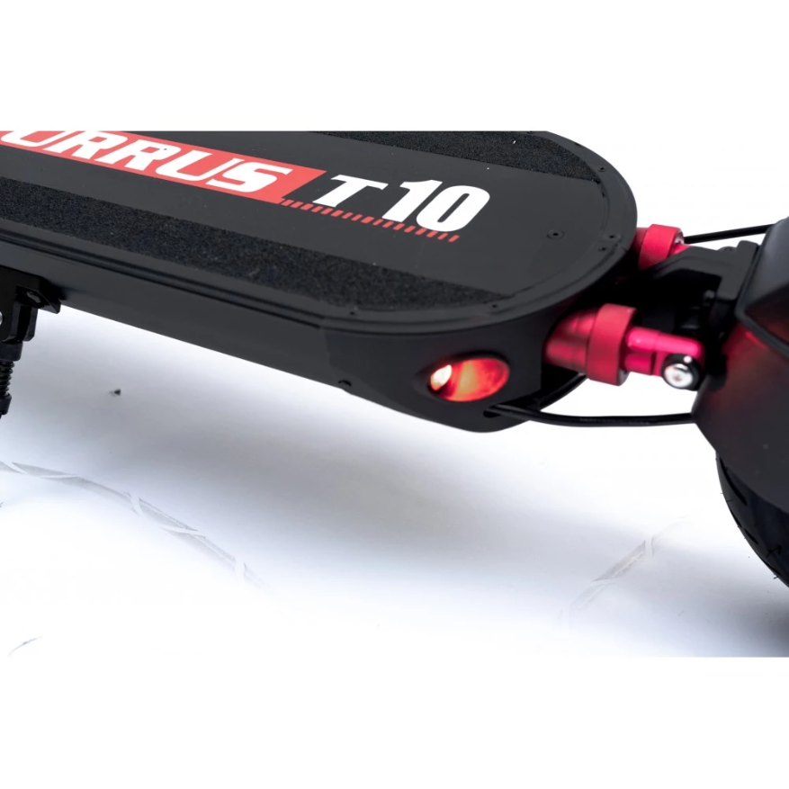 В комплектации Currus T10 емкий аккумулятор 18.2 А*ч, на одном заряде агрегат преодолевает до 40 км. После чего батарею необходимо установить на зарядку. Зарядное устройство идет в комплекте. Мощность двигателя 600 Вт, он легко въезжает на подъемы, быстро развивает максимальную скорость до 40 км/ч. Устройство оборудовано колесами 10 дюймов, его вес 24.5 кг, с критичной нагрузкой на транспортное средство до 120 кг. На переднем колесе установлены дисковые тормоза