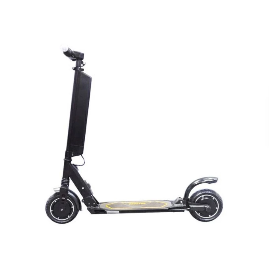 Электросамокат представлен складной современной конструкцией. Быстро трансформируется до компактных эргономичных размеров. Небольшой вес – 12 кг, позволяет самостоятельно перевозить и переносить технику. К примеру, при посещении магазина или других заведений. Удобная нескользящая платформа покрыта брендовой шкуркой. Классическая конструкция руля оснащена прорезиненными удлиненными грипсами.