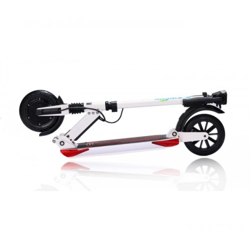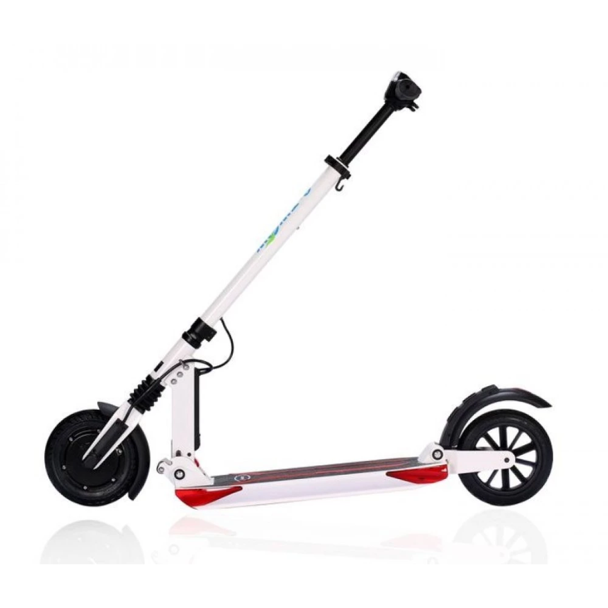 Мотор-колесо мощностью 500 Вт, максимальная скорость 33 км/ч это очень прилично для самоката такого уровня. Тормозная система на двух колесах помогает держать под контролем движение. Электросамокат спокойно вписывается в городской поток. Амортизация колес и диаметр колеса 8 дюймов способствует комфортному передвижению.