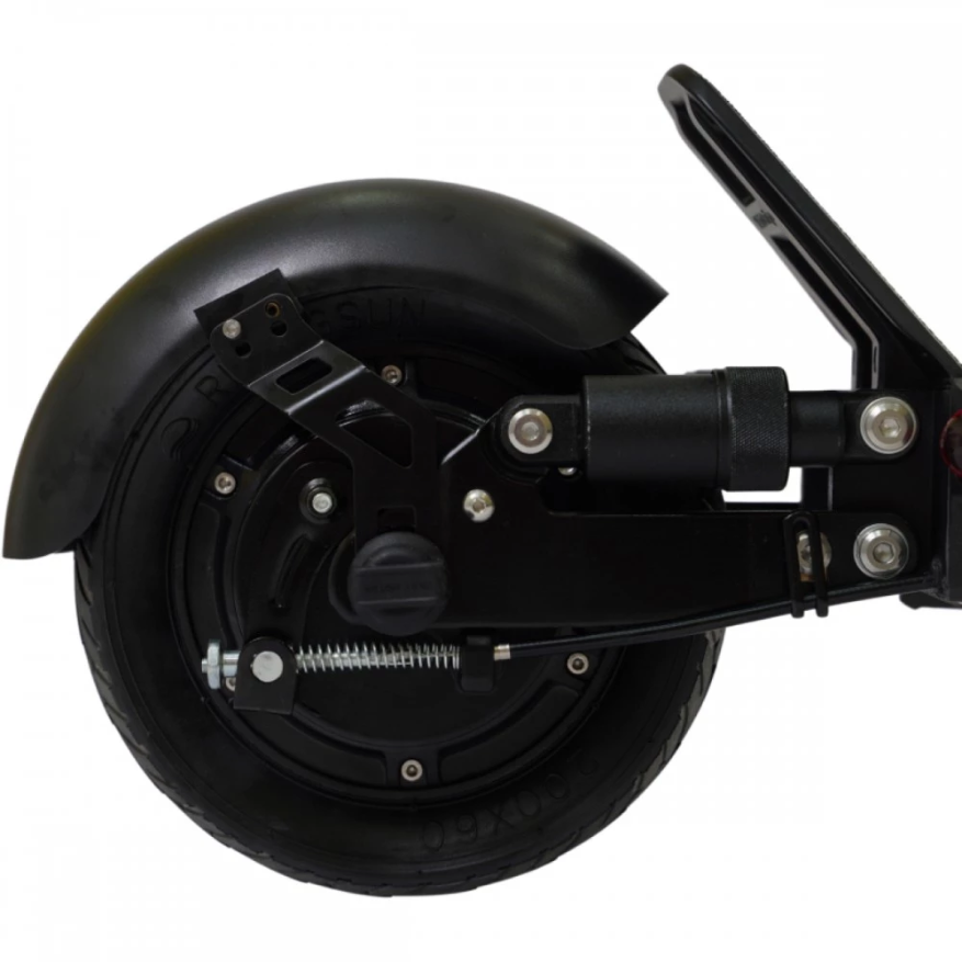 Мощность мотор-колеса 500 Вт, максимальная скорость транспортного средства составляет около 40 км/ч. Агрегат отлично передвигается по ровным асфальтированным дорогам, амортизаторы впереди и сзади делают ход электросамоката плавным. Диаметр колес 8 дюймов, эластичные шины увеличивают сцепление с дорожным покрытием. Пользователь может маневрировать, входить в поворот не боясь заноса.