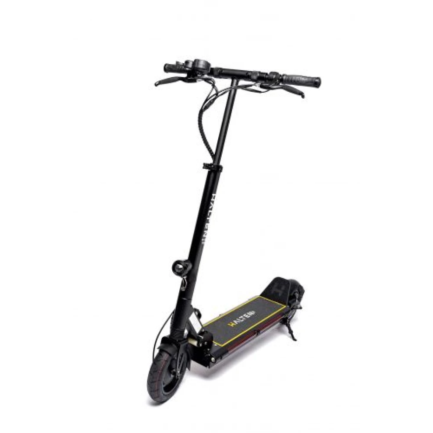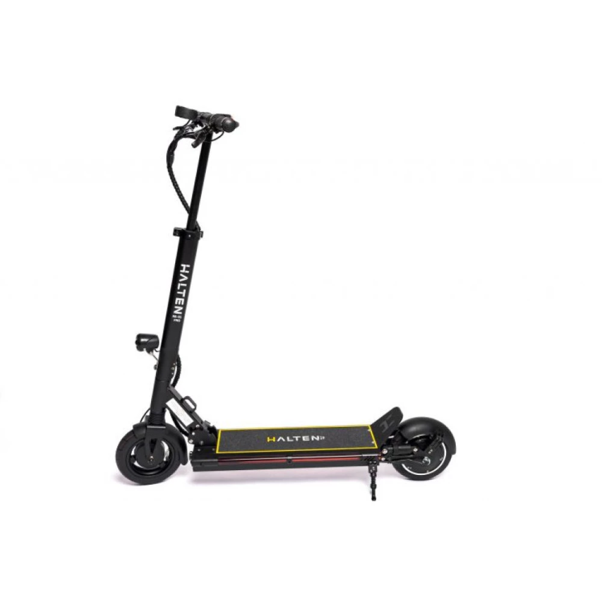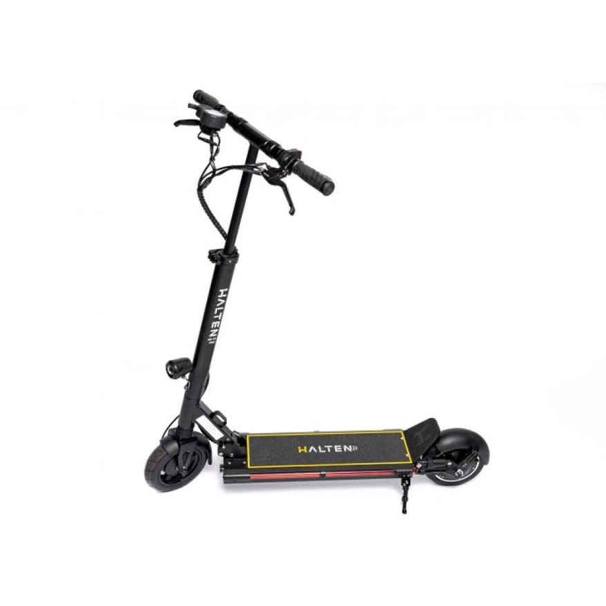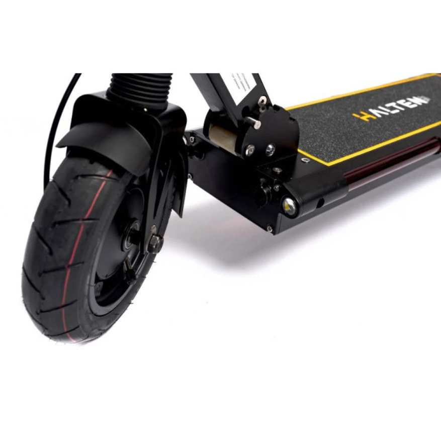 Самокат Halten Rs 01 Pro имеет 8.5 дюймовые колеса, оборудован аккумулятором 13 А*ч, с запасом хода до 45 км пути. Для пополнения заряда батареи потребуется 7 часов. Агрегат имеет складную конструкцию, одним щелчком можно уменьшить его габариты вдвое.
