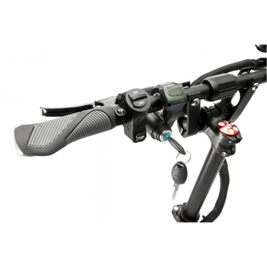 Прочная конструкция позволяет перевозить до 150 кг общего веса, регулируемый руль дает возможность подстроить его под свой рост. Есть бортовой компьютер позволяющий отрегулировать ходовые данные, контролировать показатели транспортного средства. Яркая передняя фара и стоп огни помогут передвигаться в темное время. Агрегат заводиться от ключа.