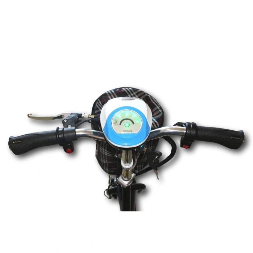 Трехколесная техника выглядит круто, накатистая и скоростная. При мощностных параметрах движка 500 Вт способна развить максимальную скорость до 25 км/час и преодолеть расстояние в 35 км. Питание на двигатель подается емкой батареей 13 Ач и напряжением 48 В. Полное время подзарядки составляет 6 часов.
