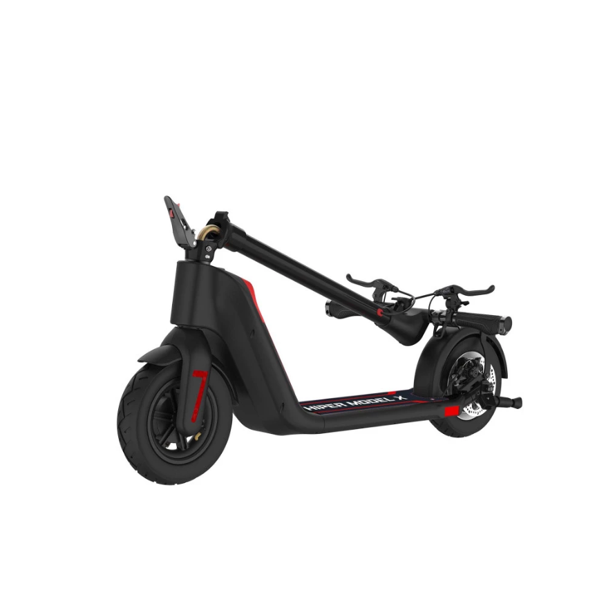 Электросамокат HIPER Model X, черного цвета – техника с литий-ионным аккумулятором с повышенной емкостью 7500 мАч и напряжением 36 В ждет своего покупателя. Классический цвет и утонченные формы понравятся пользователям 130-200 см. Техника свободно выдерживает нагрузку 140 кг благодаря раме и деке из облегченного (16,64 кг) алюминиевого сплава. Складная конструкция является несомненным достоинством тс, позволяет брать с собой в длительные путешествия.
