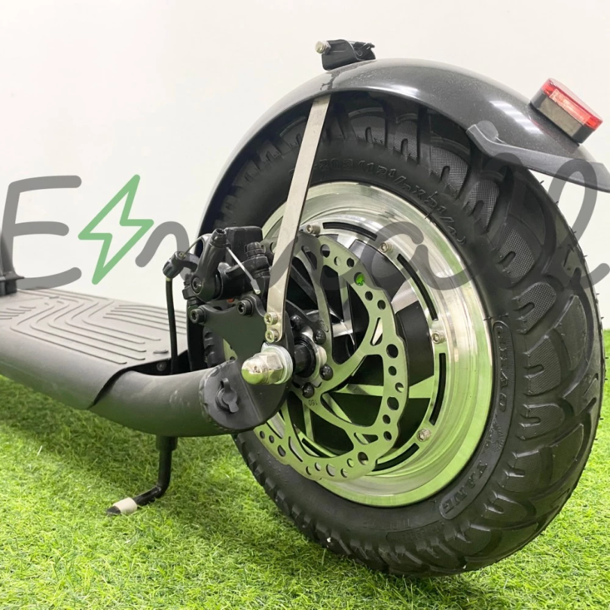 Наличие фирменной тормозной системы дает возможность совершения маневров, преодоления небольших препятствия. С точки зрения пользователей модель заслуживает лидирующие позиции в топе электросамокатов 2021.