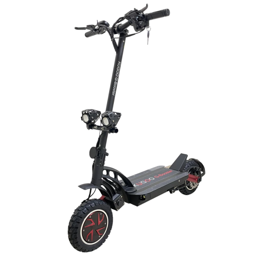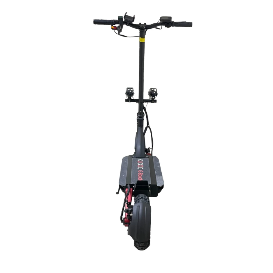 Оснащение электросамоката Kugoo G-BOOSTER включает в себя бортовой компьютер, с помощью которого можно контролировать и регулировать основные технические характеристики. Есть внешнее освещение, светодиодные элементы встроены в деку. Сигнализация, звуковой сигнал.