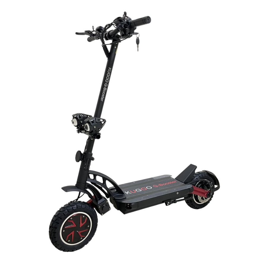 Электросамокат Kugoo G-BOOSTER мощная, полноприводная модель, которая хорошо подойдет для передвижения по бездорожью, горной местности, с легкостью преодолевает бордюры и ступеньки. Передний привод можно отключить, если необходимо ехать спокойно. На этой модели установлена уникальная подвеска моно-рычаг, впереди и сзади, это позволяет сглаживать тряску от движения по самым не ровным дорогам.