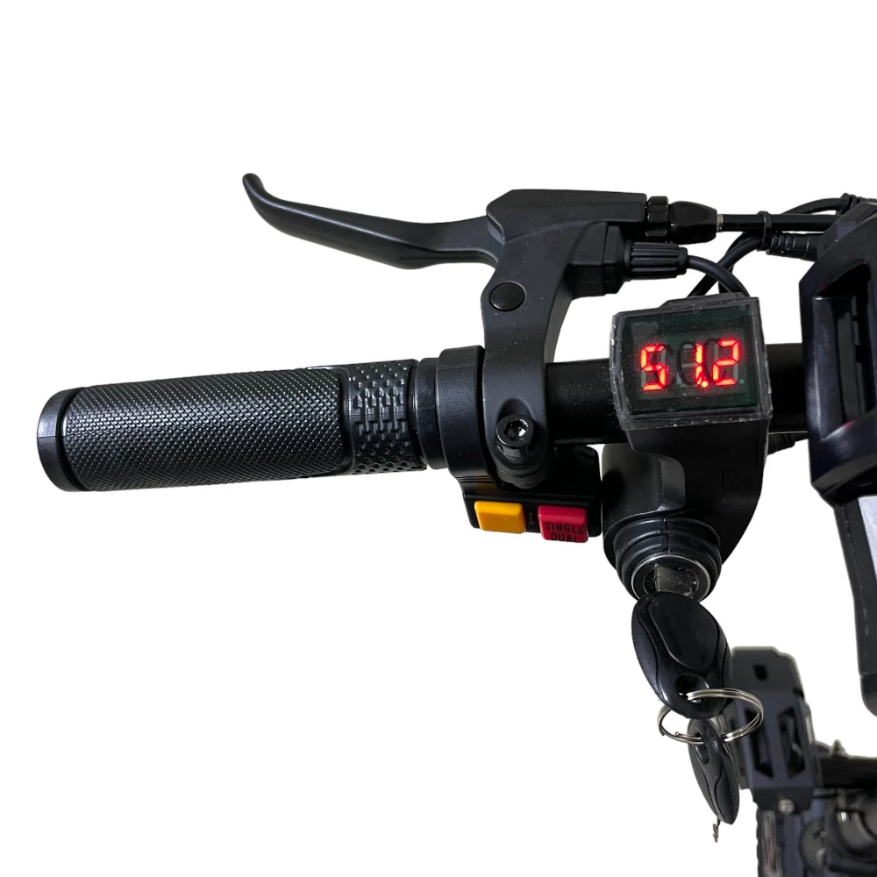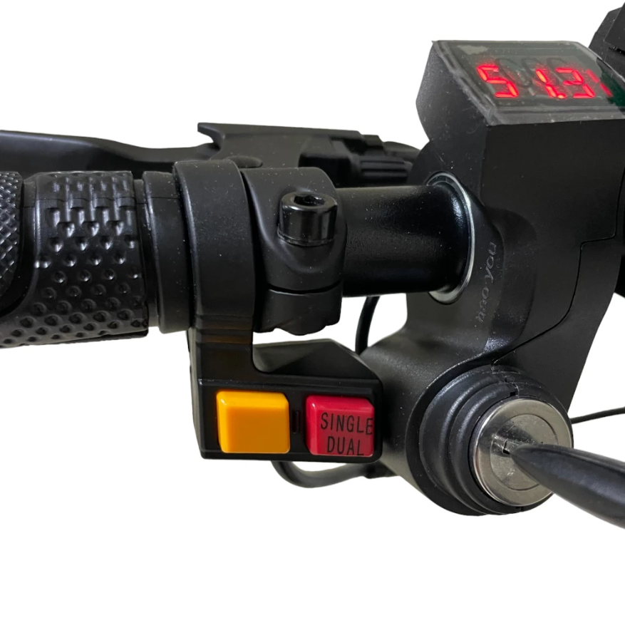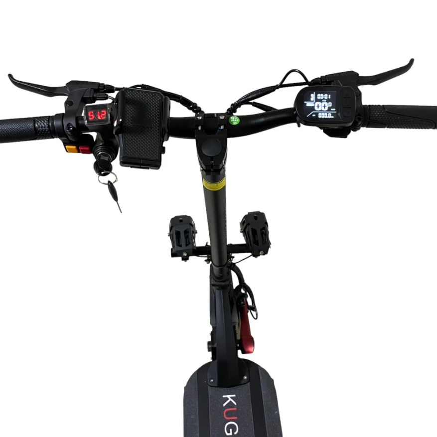 Электросамокат Kugoo G-BOOSTER оснащен двумя двигателями мощностью по 800 Вт каждый, напряжение 48 вольт. Такие показатели позволяют подниматься в крутые подъемы, агрегат развивает максимальную скорость до 55 км/ч. Есть возможность подбирать удобный для себя скоростной режим, для этого самокат имеет 3 скорости. В данной модели установлен аккумулятор емкостью 20.8 А*ч. Этого отлично хватает для нормальной работы двигателей и для дальности хода на одном заряде до 65 км пути. Дисковые тормоза на оба колеса.