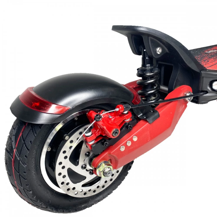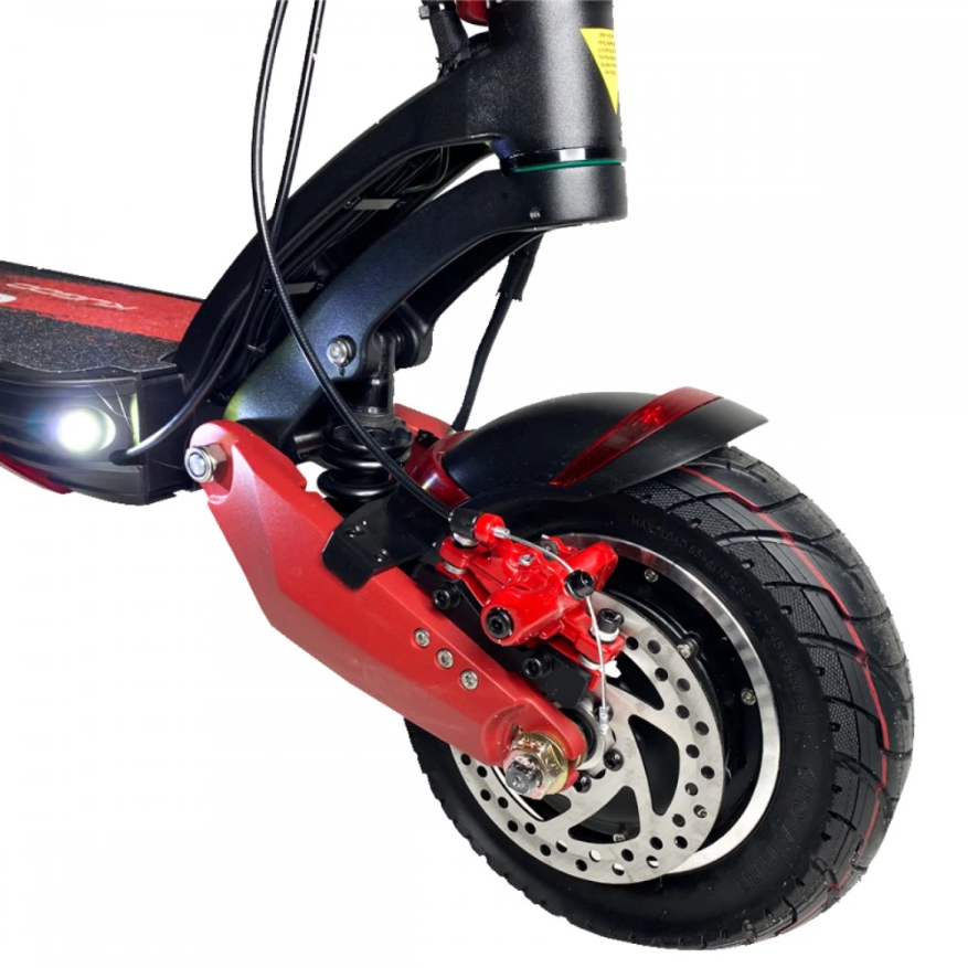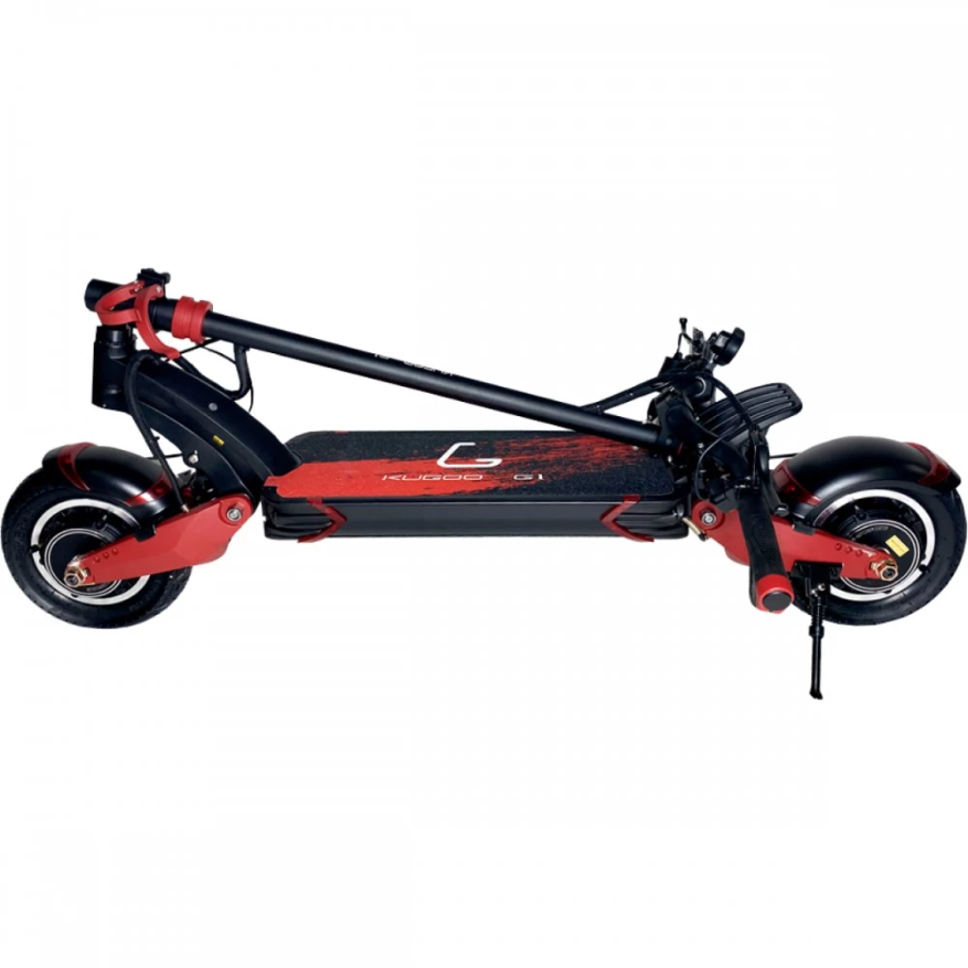 Kugoo G1 имеет полный привод, два его рабочих мотор-колеса имеют мощность по 1000 Вт, полная мощность агрегата 2000 Вт. Для экономии заряда аккумулятора при спокойном передвижении один двигатель можно отключать. Питание агрегата обеспечивает аккумуляторная батарея 18.2 Ah, напряжение 52 вольта. Приличная мощность транспорта позволяет развивать ему максимальную скорость движения 65 км/ч. На одном заряде аккумулятора он может проехать около 60-65 км, в зависимости от нагрузки. Электросамокат весит 35 кг, пиковая нагрузка составляет 300 кг.