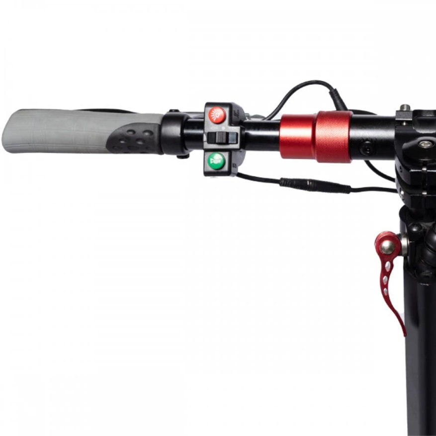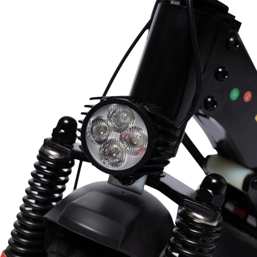 Имеет яркую фару спереди, стоп-сигнал и боковую подсветку.