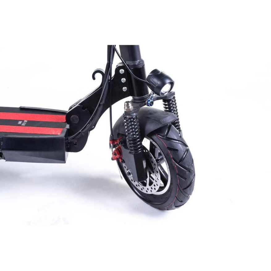 Хорошая проходимость Kugoo M4 PRO за счет мощного мотора 500 Вт и 10 дюймовых колес. Он спокойно преодолевает грунтовые и гравийные участки дорог. Отлично поднимается на подъем до 20 градусов. По два пружинных амортизатора на переднем и заднем колесах хорошо смягчают ход электросамоката.