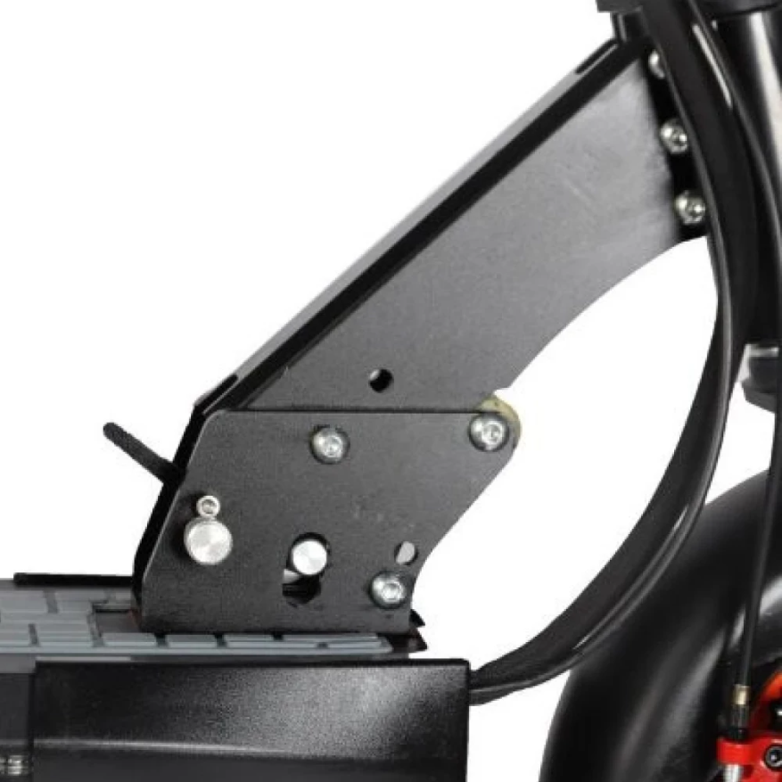 Этот электроскутер позаботится и о том, чтобы вам было комфортно в пути. У него есть удобное сиденье, четыре пружины для амортизации, подножка и большая по площади дека со специальным напылением. Кроме того вы можете настроить под себя высоту рулевой стойки, а сам самокат выдерживает 120 килограмм!