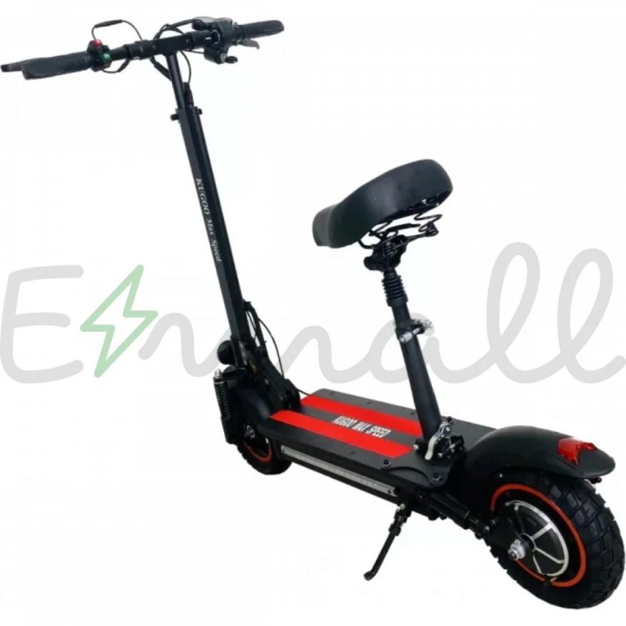 Самокат Kugoo Max Speed воплотил в себе все удачные детали от предыдущих моделей. Конструкция очень удобная, оборудована съемным сидением, руль и сидение можно подогнать по высоте, дека увеличилась в размерах, стала шире. На этой модели установлено заднее крыло нового типа, закрывает большую часть колеса, крепится непосредственно к деке.