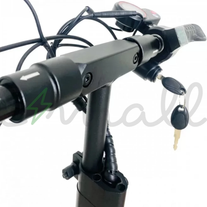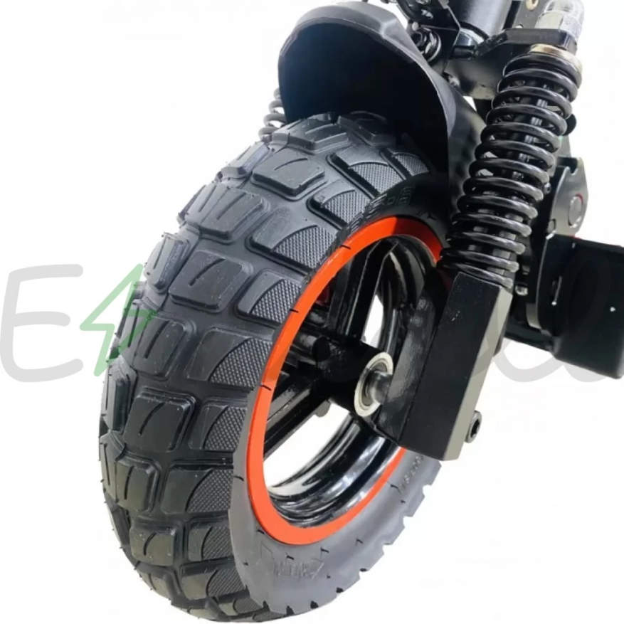 Электросамокат Kugoo Max Speed имеет задний привод, двигатель мощностью 600 Вт, напряжение 48 вольт, развивает максимальную скорость 50 км/ч, есть возможность подобрать скоростной режим, 3 скорости. Достаточно резвый и маневренный. Устройство питается от аккумуляторной батареи 11 А*ч, он скрыт в деке. При такой емкости запас хода на одном заряде доходит 25-35 км пути. Для передвижения по гравийным и грунтовым дорогам электросамокат оснащен парой пружинных амортизаторов на переднем и парой на заднем колесе, в сочетание с амортизированным сидением передвижение на агрегате плавное и комфортное. Колеса 10 дюймов в диаметре. Дисковая тормозная система на двух колесах.