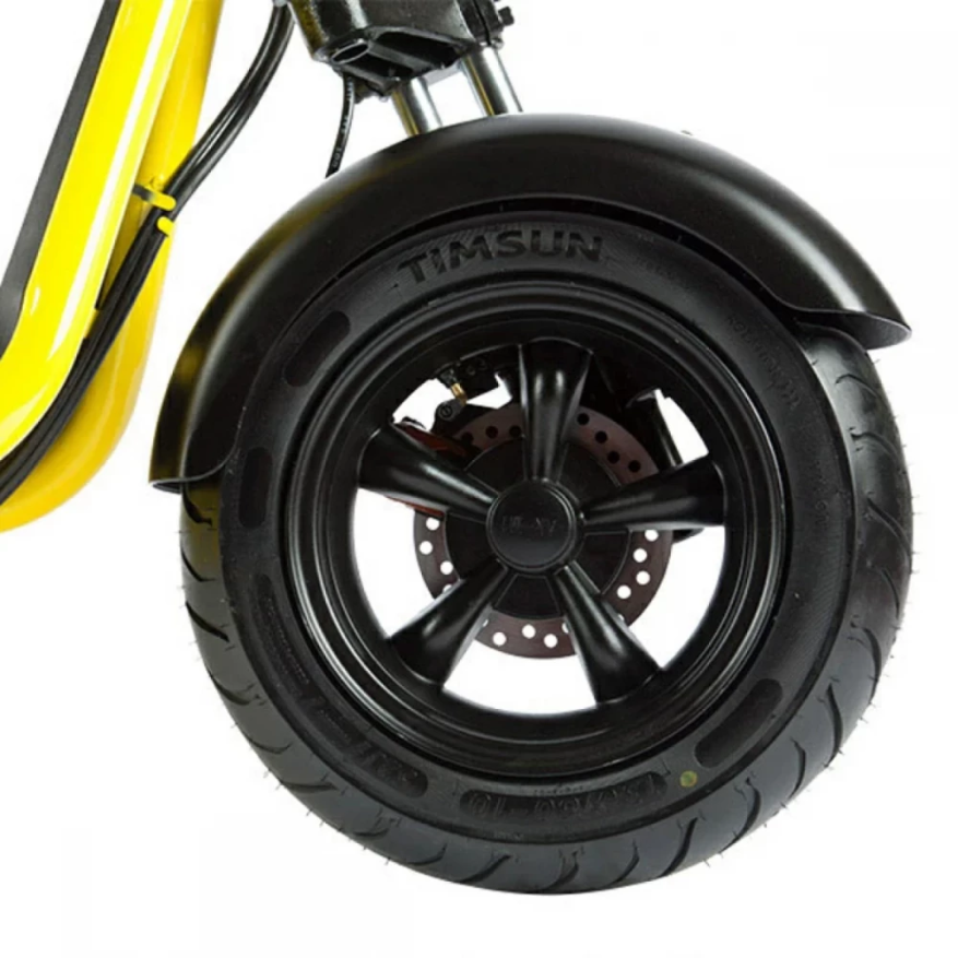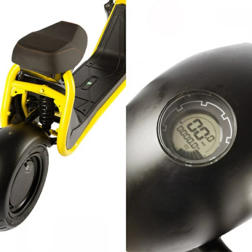 Скутер изготовлен в минималистичном дизайне. Его высота составляет 114 см. При мощности движка 1200 Вт он способен выжимать 35 км/час и преодолевать аналогичное расстояние на одной подзарядке.