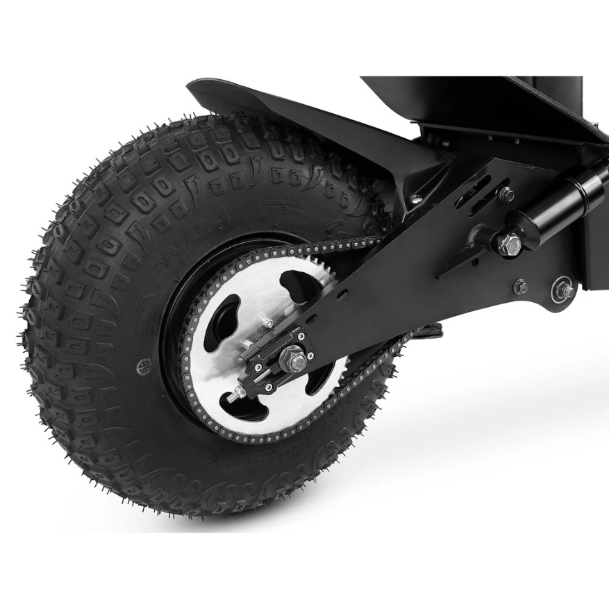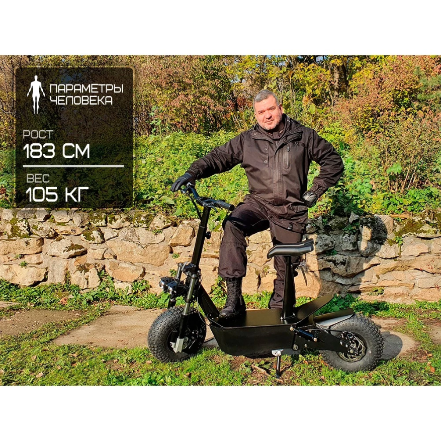 Электросамокат рассчитан для езды в черте города и преодоления проблематичной местности. Максимальная грузоподъемность составляет 150 кг. Оснащенность модели 14 дюймовой колесной частью и внедорожной резиной исключает проблемы преодоления глинистой и песчаной поверхности. Анатомическое регулируемое по высоте седло удобное и практичное, особенно для райдеров с большим весом. Оснащенность техники амортизаторами делает езду плавной на неровностях, минимизирует ощущение вибрации.