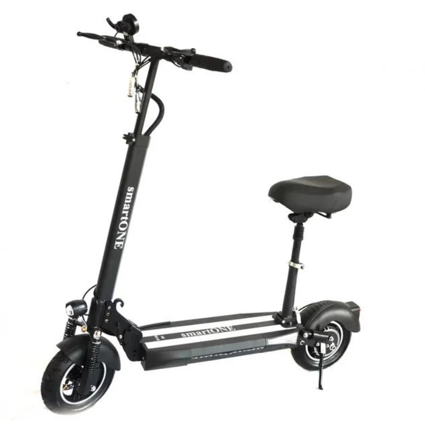 Электросамокат SmartOne MS-1 PRO мощный заднеприводный транспорт, который поможет каждый день преодолевать приличные расстояния. Его складная конструкция дает возможность в сложенном состоянии транспортировать его или убрать на хранение на зимнее время. Как дополнение, предусмотрено сидение. С комфортом совершать дальние прогулки вам будет на много проще. Руль регулируется под рост пользователя или под положение сидя.