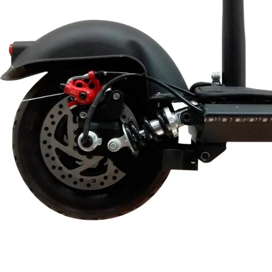 Техника оборудована мощным электромотором 800 Вт, что позволяет разгоняться до 40 км/час за короткое время. Литий-ионный аккумулятор 13 Ач восполняет заряд за 6 часов и позволяет пройти до 45 км.
