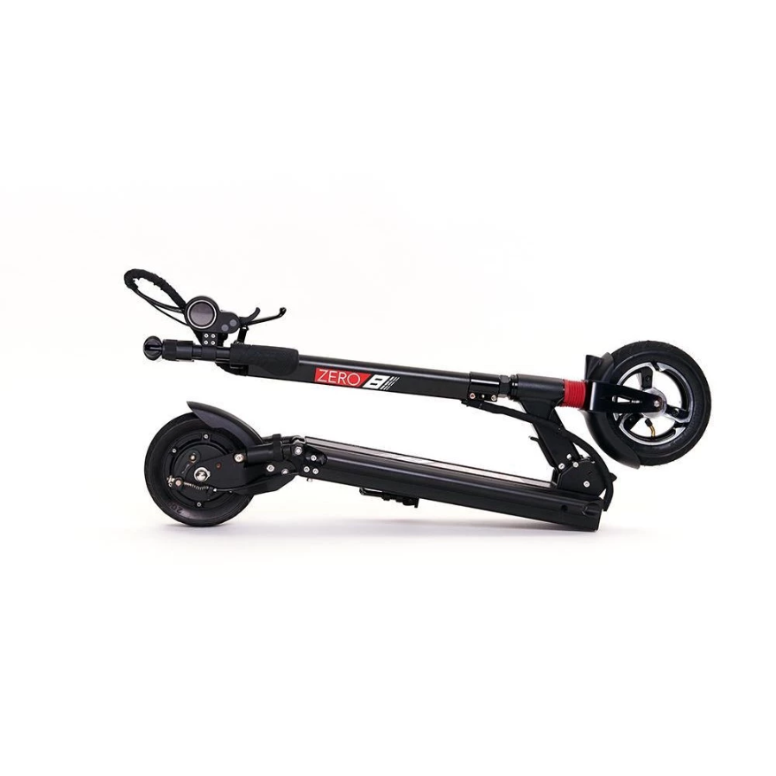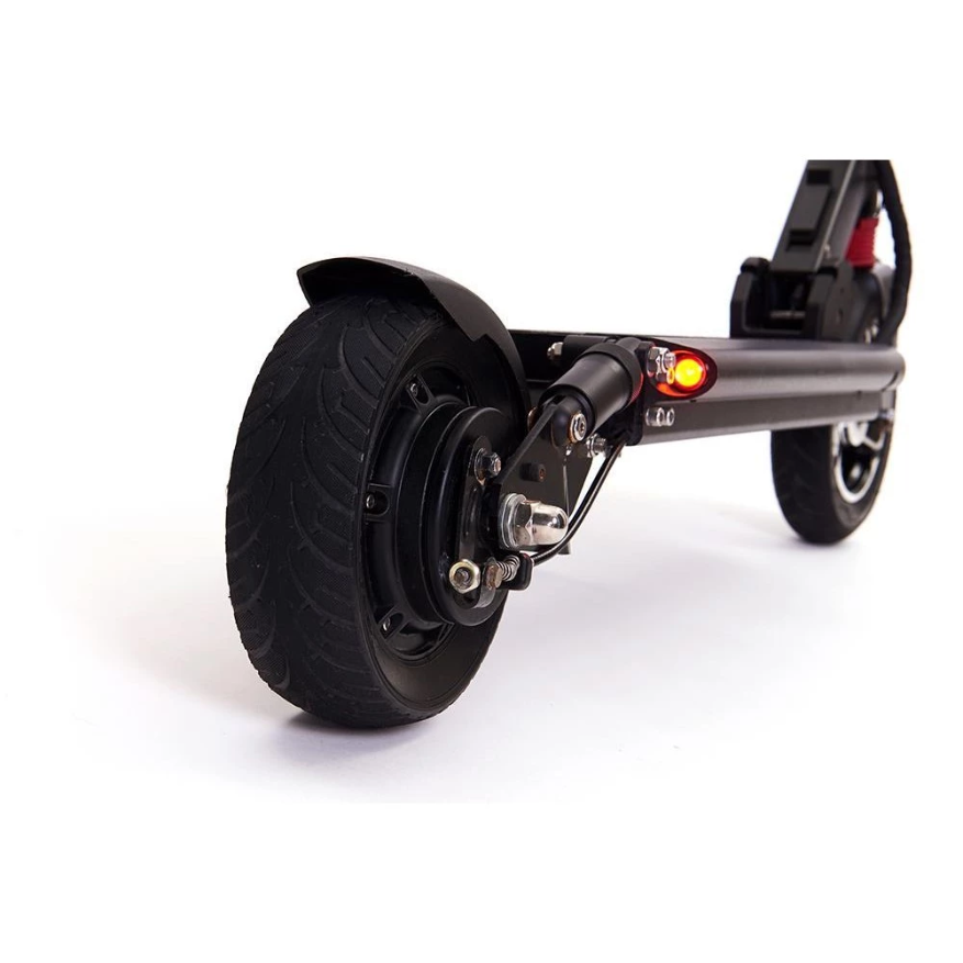 Самокат Starway Z8 оборудован 8 дюймовыми колесами. Амортизация состоит из передней пружины и двух гидравлических амортизаторов на заднем колесе. Она хорошо сглаживает тряску при движении по не ровной дороге. На заднем колесе установлен барабанный тормоз, который позволит быстро реагировать на дорожную ситуацию. В темное время суток необходимо передвигаться со включенным внешним освещением.