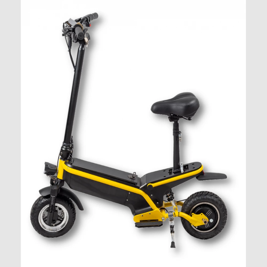 Электросамокат с сиденьем SUNEP1 от производителя с 10 летним стажем на мировом рынке экспорта выбран продуктом сезона во многих интернет магазинах. У модели приемлемая цена, современный дизайн в черно-желтой расцветке и сиденье, что делает эксплуатацию транспорта приятнее и комфортнее.