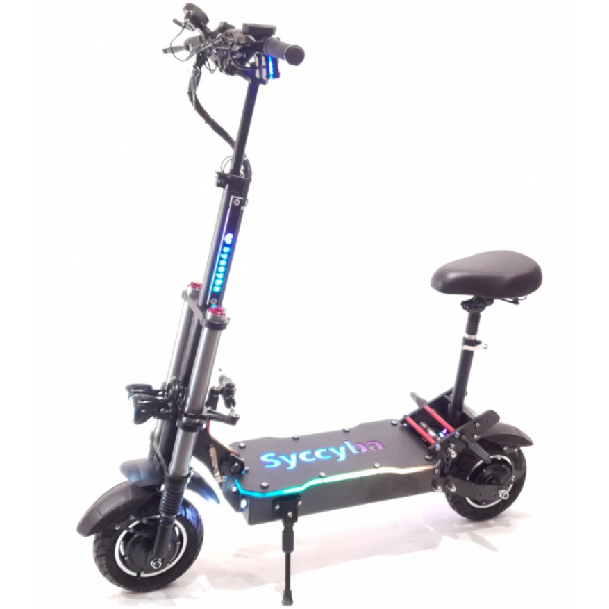 Электросамокат Syccyba R11 Mini 60V 33.6Ah – модель по максимуму наполнена комфортом и удобством. Практичная для повседневного и активного время провождения. Купить технику по лучшей цене, без вмешательства перекупщиков предлагает наш интернет-магазин. Перед принятием решения производитель рекомендует изучить плюсы и минусы, сделать правильные выводы. Модель весом 44,3 кг рассчитана на максимальную грузоподъемность до 150 кг. Подходит пользователям с лишним весом и райдерам, предпочитающим комфорт. Наличие удобного регулируемого седла увеличивает практичность модель. Снимает усталость с позвоночника, исключает дискомфорт. Большая вместительная платформа покрыта нескользящим материалом. Исключает отечность стоп при длительной езде. При максимальной мощности электродвижка в 3360 Вт максимальные скоростные параметры составляют 70 км/час. Запаса хода достаточно для продолжительной езды. Модель оснащена 2 зарядными на 3А, которые находятся в комплектации. Время полной зарядки составляет 6 часов. Гидравлическая тормозная система обеспечивает своевременность остановки. Контроллеры на 28 А – синусные, обеспечивают защиту от межфазного замыкания. Наличие светодиодных фар и жк-дисплея дают возможность езды в вечернее время и непогоду, контроля за техническими параметрами. Удобная подножка позволяет парковаться в труднодоступных местах. Для оформления заказа предлагаем связаться с нашим менеджером.