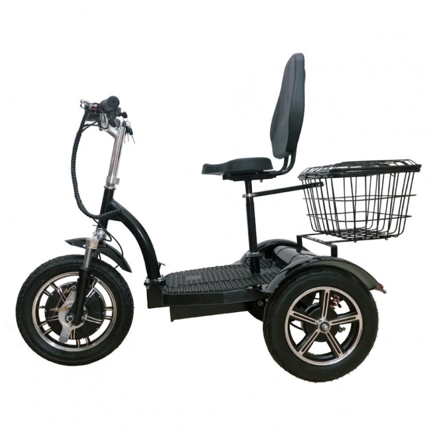 Модель со стальной рамой и 16-дюймовыми шоссейными колесами в сочетании с мощным электромотором (500 Вт) обещает достижение максимальной скорости до 35 км/час. Емкости батареи достаточно на расстояние до 50 км. Визуально техника выглядит современно, заметно на фоне аналогичной. Комфортабельное сиденье со спинкой регулируется под параметры райдеров. Объемная задняя корзина удобная для посещения магазинов, вылазок с друзьями на природу. Широкая нескользящая платформа минимизирует форс-мажор. Основной функционал размещен на рулевой части. Наличие светодиодной передней фары допускает движение в проблематичное время суток и вечером.