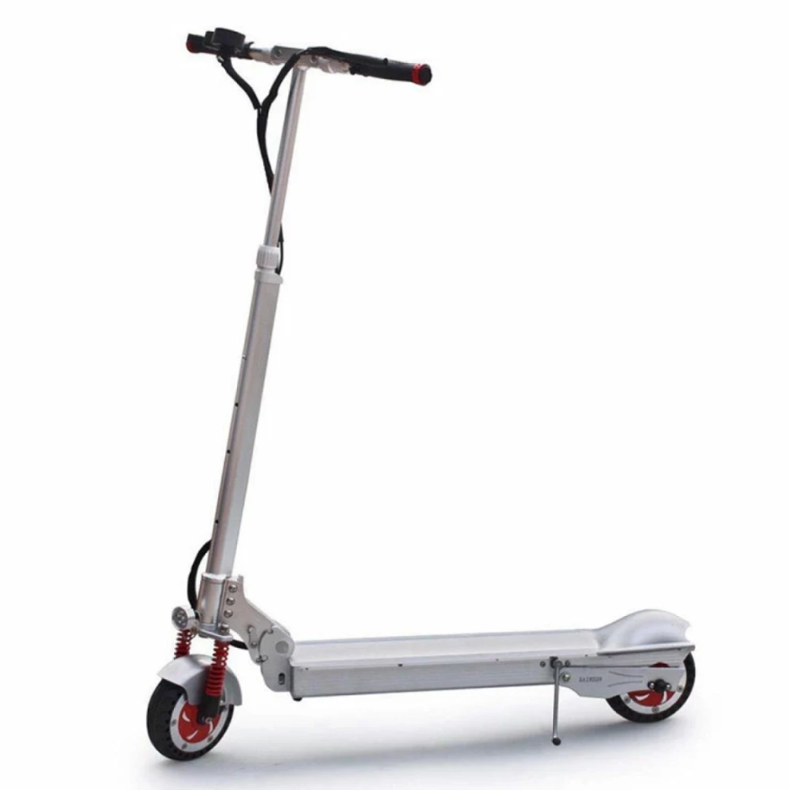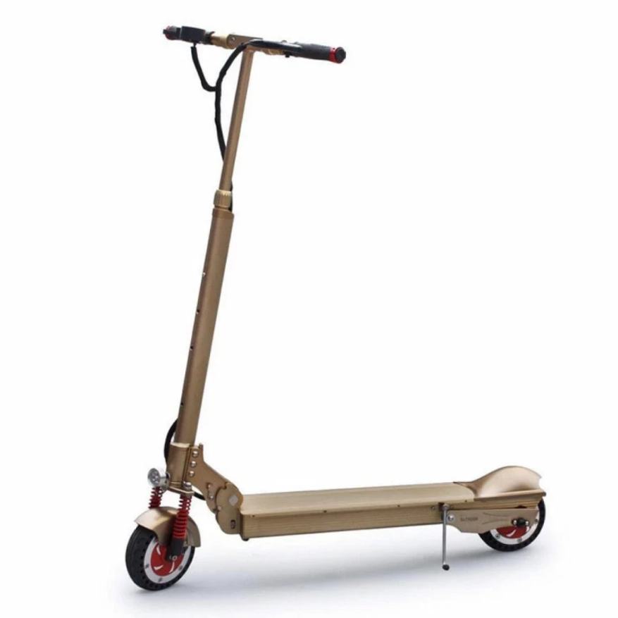Электросамокат массой 16,6 кг изготовлен из инновационного алюминия, способного выдерживать максимальную грузоподъёмностью до 120 кг. Выглядит современно и стильно на фоне аналогичной техники. При мощности электродвижка в 350 Вт ездок может развить скорость до 45 км/час. С такими параметрами следует задуматься о покупке дополнительных аксессуаров защиты для ездока. Ёмкости батареи в 13Ah достаточно для преодоления расстояния до 30 км. Батарея надежно спрятана в деке, защищена от механического воздействия и неблагоприятных погодных факторов.