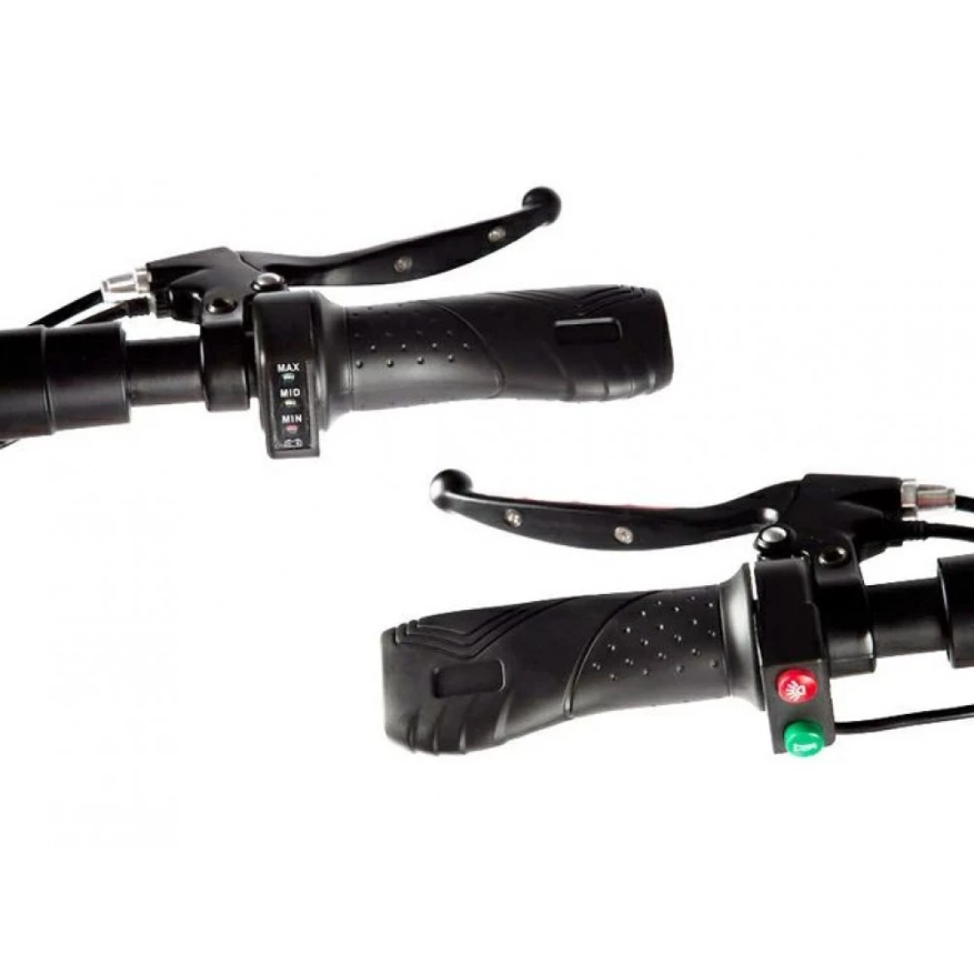 Оригинальная светодиодная панель отображает уровень заряда и скорость езды пользователя. Быстрый набор 45 км/час обеспечивается электрическим двигателем, выдающим номинальную мощность 1300 Вт. Техника свободно выдерживает 140 кг благодаря усиленной раме из стали. Классическая форма руля имеет идеальные эргономические характеристики. Оригинальное светодиодное освещение хорошо обозначает пользователя во время ночных заездах и при плохой погодной видимости. Жесткая подвеска на амортизаторах позволяет легко преодолевать возвышенности и неровности. Для быстрого оформления заказа предлагаем связаться с менеджером компании в онлайн-чате.
