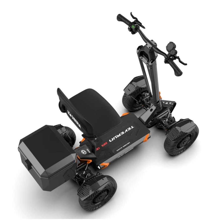 Электросамокат WHITE SIBERIA BANDIT 4x4 7200W оснащен четырьмя мотор-колесами по 1800W и способен развивать скорость до 65 км/ч, что делает его одним из самых быстрых в своем классе. На одном заряде аккумулятора 65Ah (72V) самокат проезжает до 100 км. Гидравлические дисковые тормоза гарантируют безопасность, а полная амортизация и карбоновые крылья добавляют устойчивости и стиля. WHITE SIBERIA BANDIT 4x4 7200W.