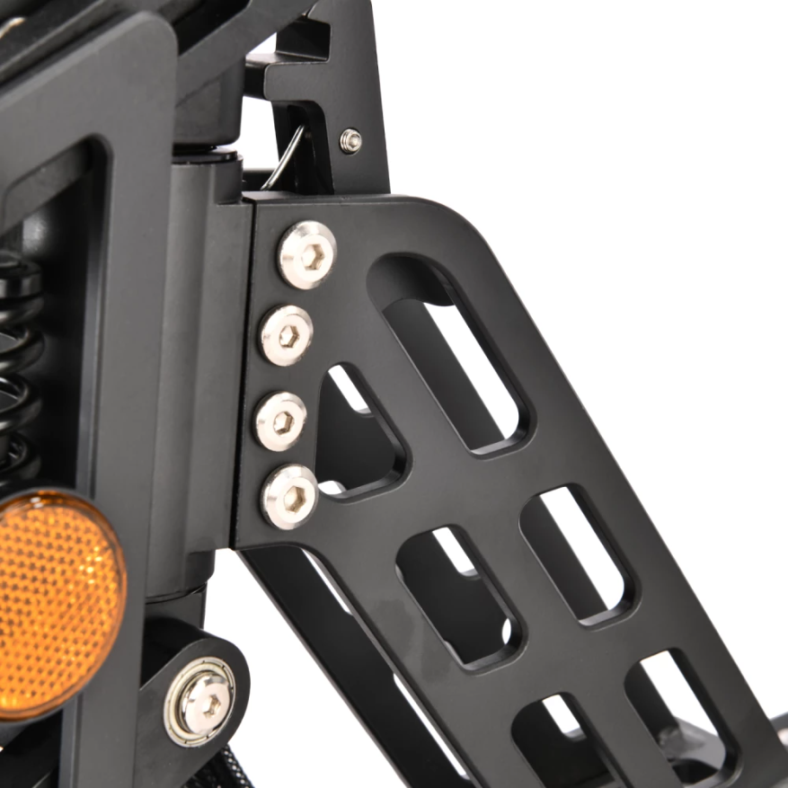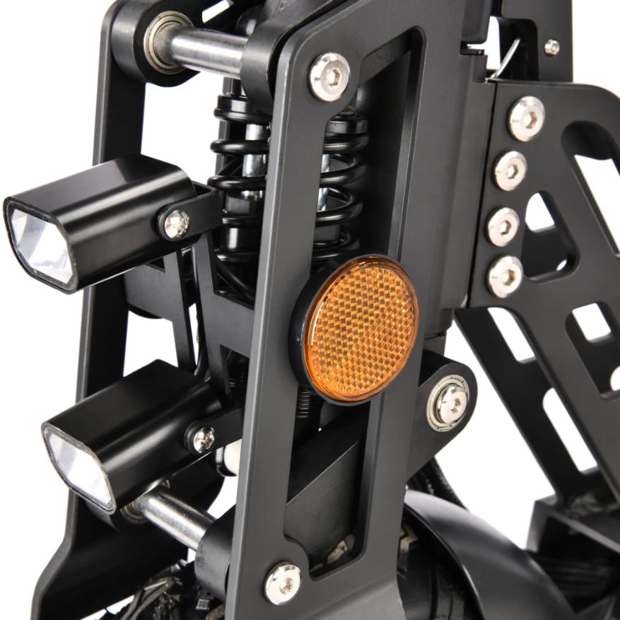 Техника оснащена удобным сиденьем, повторяющем анатомические части тела. При мощности мотора 1000 Вт максимально допустимая производителем скорость составляет 55 км/час. Запас хода электросамоката составляет 55 км. Время зарядки батареи – 8 часов.