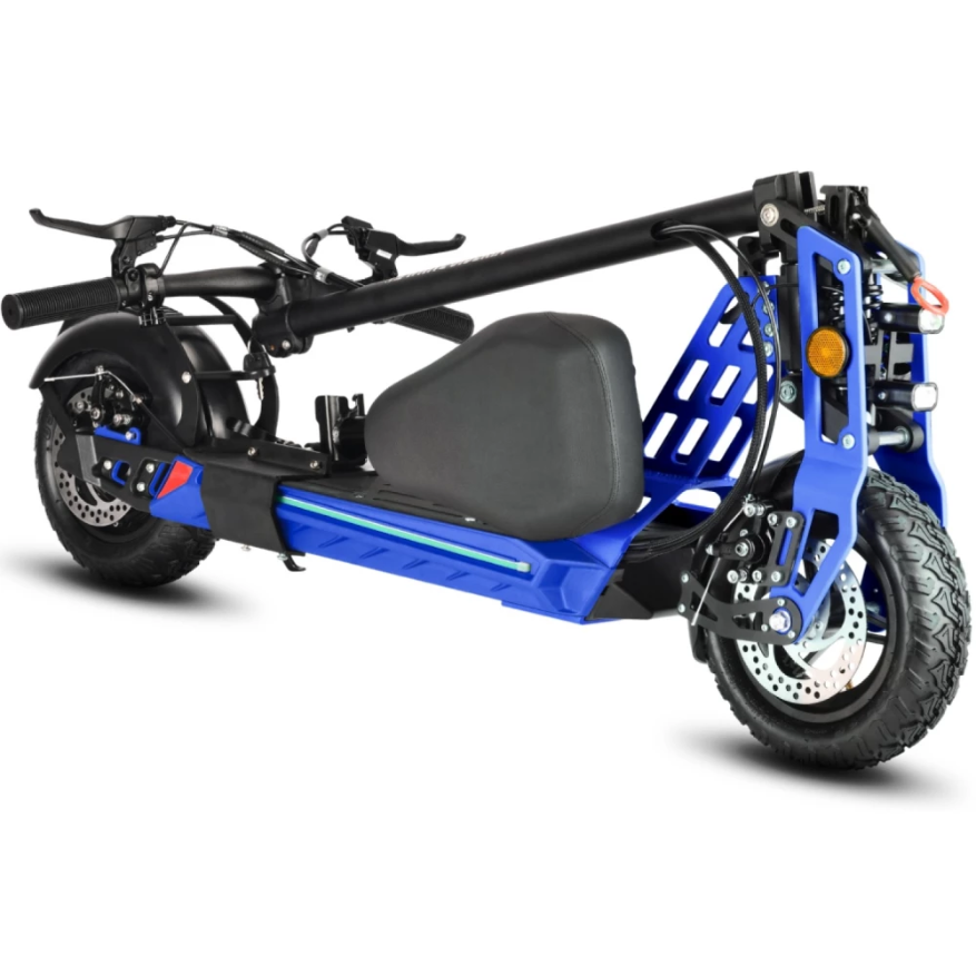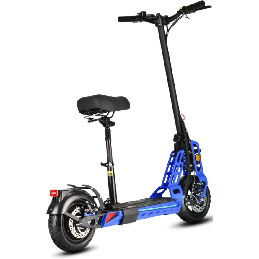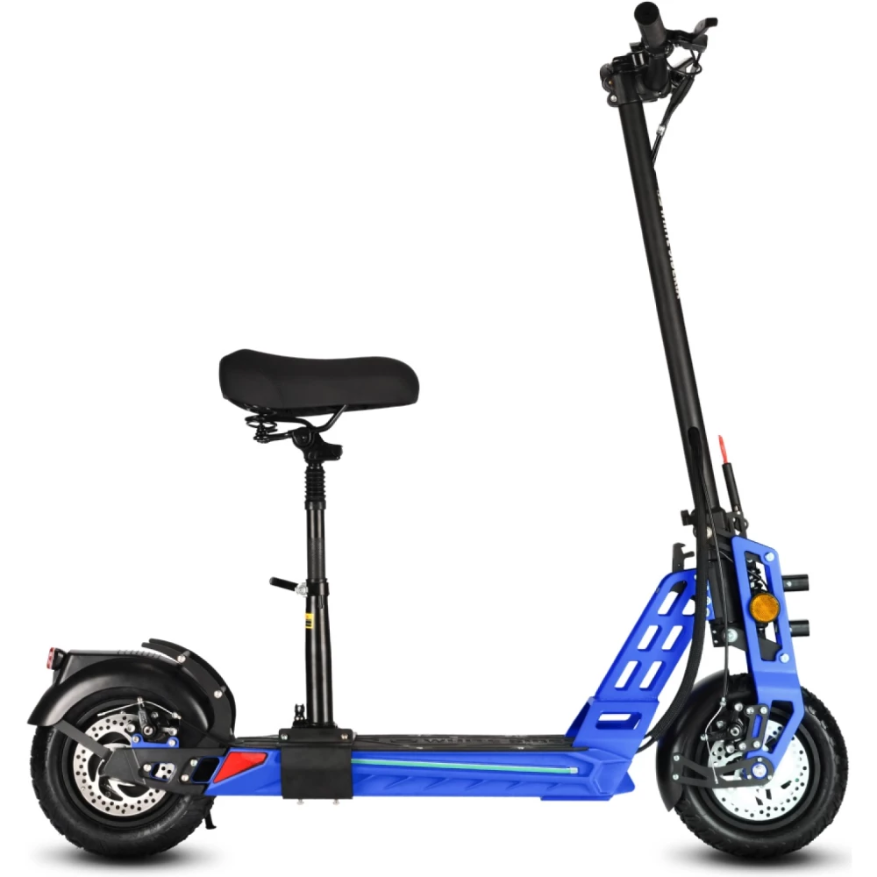 Электросамокат имеет компактные эргономичные размеры, изготовлен так, что при эксплуатации ездок не ощущает усталости, нагрузки на ноги и позвоночник. Наличие бортового компьютера позволяет оставаться в курсе событий, контролировать скоростные характеристики, заряд АКБ и другие параметры. При мощности мотора в 1000 Вт способен развивать скорость до 55 км/час.