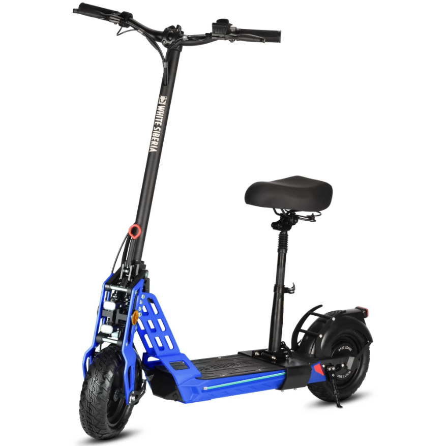 Электросамокат WHITE SIBERIA TAIGA 3.0 (2022) – Blueberry – брутальная модель с мощным движком 1000 Вт быстро заняла лидирующие позиции на рынке. Литий-ионный аккумулятор (48 В) подает питание на мотор и обеспечивает быстрый разгон до 45 км/час. При этом, батарея заряжается за 8 часов от бытовой розетки для экономии времени пользователя. Полного заряда АКБ точно хватит, чтобы пройти 50 км пути. Наш интернет-магазин предлагает цены от производителя и быструю доставку.