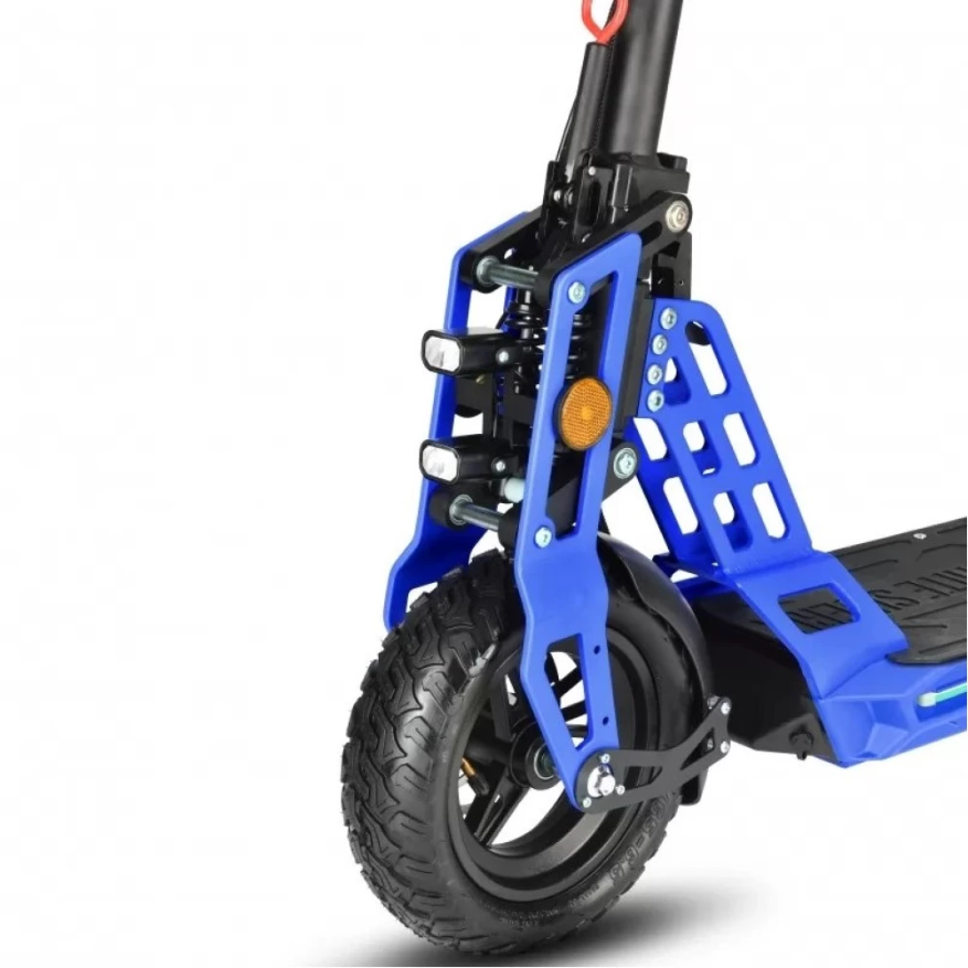 Футуристический внешний вид вызывает восторг и зависть одновременно. Большие надувные колеса (11 дюймов) изготовлены из прочной резины. Алюминиевый сплав рамы имеет небольшой вес (23 кг) и свободно выдерживает нагрузку до 125 кг. Компактные размеры 115*58*49 см и складная конструкция позволяют брать с собой в загородные путешествия. Дисковая тормозная система на каждом колесе обеспечивает быструю полную остановку. Удобное сидение идеально повторяет анатомические формы тела. Амортизация усовершенствована и хорошо скрывает дорожные ямы. Дека 22*47 см имеет нескользящую поверхность для большего удобства поездок.
