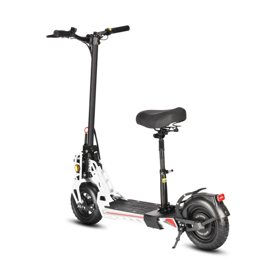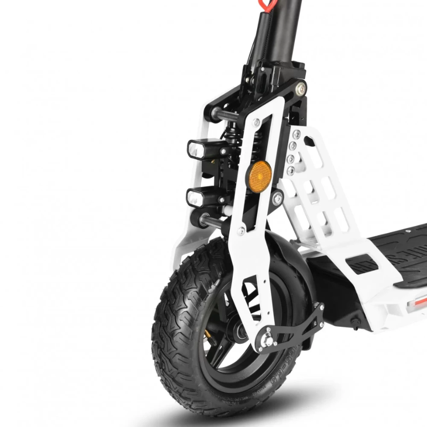 Электродвигатель мощностью 1000 Вт свободно разгоняется до максимальных показателей 45 км/час. Литий-ионный аккумулятор (емкостью 16000 мАч) надежно защищен от механических повреждений. Полного заряда АКБ (8 часов) хватит на прохождение 50 км пути. Амортизационные пружины хорошо смягчают дорожные неровности и дарят полное ощущение комфорта. Складная конструкция и удобное сидение делают его особенно популярным среди райдеров. Резиновые надувные колеса (11 дюймов) рассчитаны на эксплуатацию в городской местности и парковых зонах. Широкая дека 22*47 см позволит пользователю комфортно располагаться при поездках. Дисковая механическая тормозная система предусмотрена отдельно на каждом колесе дарит райдеру полное ощущение безопасности. Для большего удобства поездок на руле расположен переключатель скоростей.