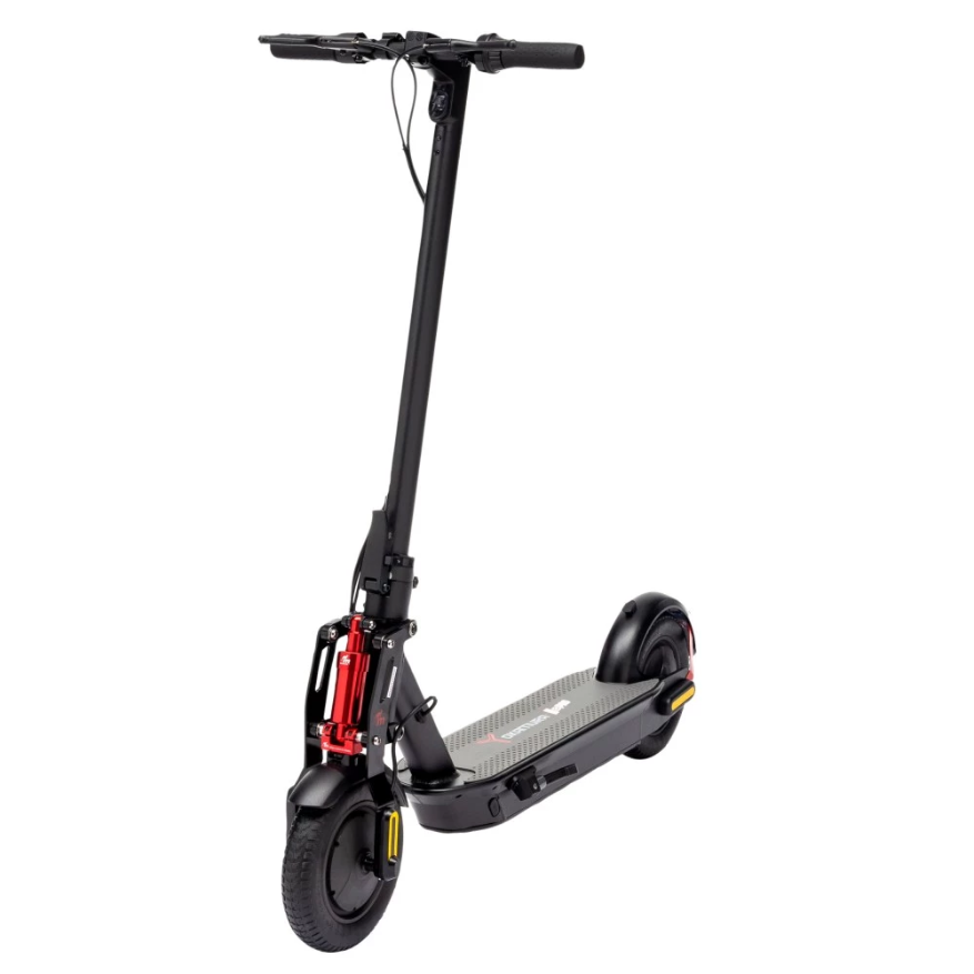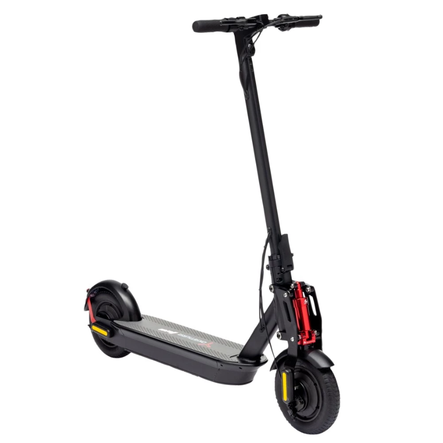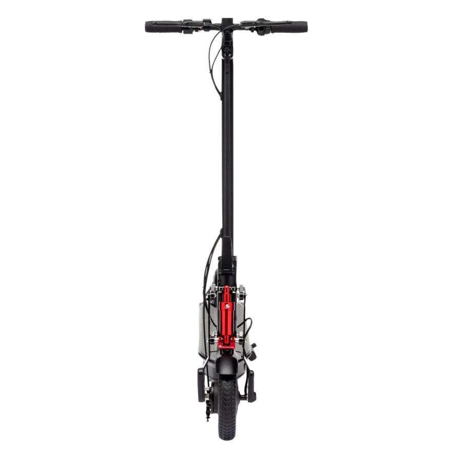 Самокат довольно массивен (23кг), но это позволяет ему быть эффективным при максимальной нагрузке 150кг, а путь до 60 км без подзарядки — очень серьёзный показатель для такого транспорта. Он полноприводный, с прочными колесами, укомплектован надёжными барабанными тормозами, передним фонарём и отражателями на колёсах, стойках и кожухе — производитель позаботился о вашей безопасности в любых ситуациях.