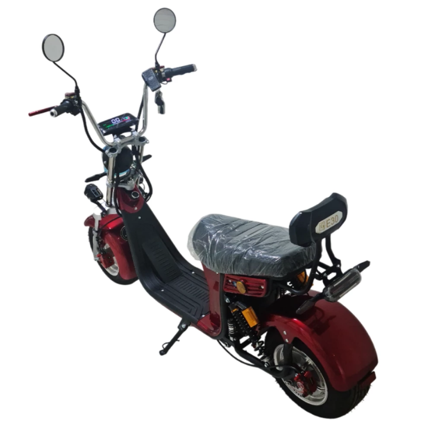 Электроскутер Citycoco GT E30 в красном цвете — это универсальное средство передвижения. С мощностью 3000W и задним приводом, он обеспечивает отличную динамику и маневренность на городских улицах. Благодаря двухколесной конструкции и надувным колесам диаметром 18 дюймов, скутер уверенно держится на дороге, что делает его идеальным для поездок по различным покрытиям.Съемный аккумулятор с напряжением 60V позволяет преодолевать расстояние до 50 км на одном заряде, что делает его идеальным вариантом для ежедневных поездок. Время зарядки составляет всего 5 часов, что обеспечивает быструю готовность к новым приключениям. Кроме того, в конструкции предусмотрено дополнительное место под аккумулятор, что увеличивает возможности автономной работы.Скутер весит 75 кг и может выдерживать максимальную нагрузку до 120 кг, что делает его подходящим для различных пользователей. Дисковые гидравлические тормоза обеспечивают надежную остановку, а большое мягкое сиденье и амортизаторы гарантируют комфорт даже при длительных поездках.Дополнительно, Citycoco GT E30 оснащен бортовым компьютером, зеркалами, звуковым сигналом, фарой и поворотниками, что повышает безопасность и удобство. Большая дека под ноги и прочная конструкция делают поездки еще более приятными.Электроскутер Citycoco GT E30 — это идеальное сочетание стиля, мощности и комфорта для тех, кто ценит удобство и скорость в городской среде.