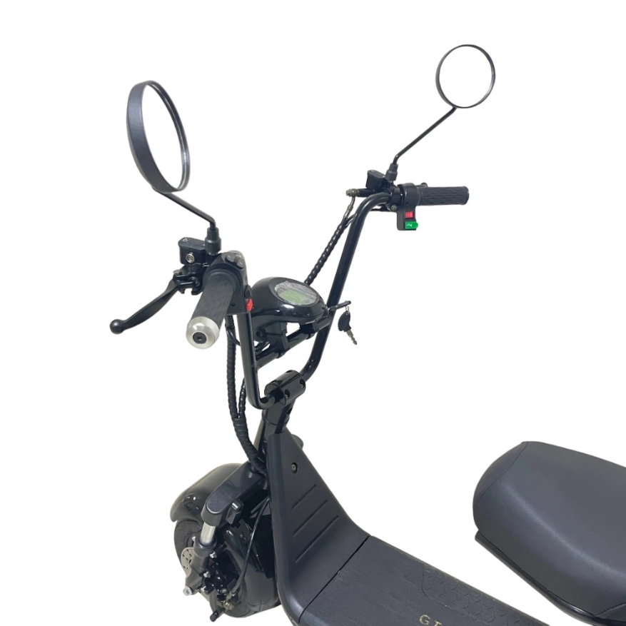 Электроскутер CityCoco GT-X1 PRO Mini черный – эргономичная техника рассчитана на водителя и пассажира. Оснащена большим мягким водительским седлом и компактным пассажирским. Последнее оснащено спинкой, увеличивающей степень комфорта при езде на дальние расстояния. Купить электроскутер без посредников и торговых надбавок предлагает наш интернет-магазин.