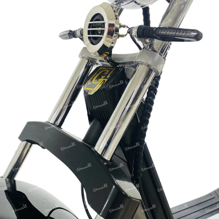 Электроскутер может развивать скорость до 55 км/ч. Сиденье рассчитано на 2 человека. Выдерживает пользователей до 200 кг. Модель имеет круиз-контроль, а также зарядное устройство.