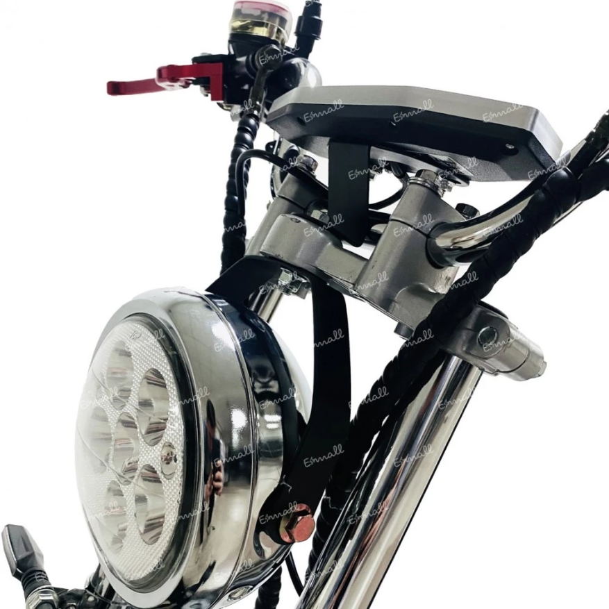 Рама электроскутера выполнена из прочной стали, которая не деформируется даже при больших нагрузках. Мощная фара на 6 светодиодов хорошо освещает дорогу, что дает возможность безопасного использования транспорта в темное время суток.