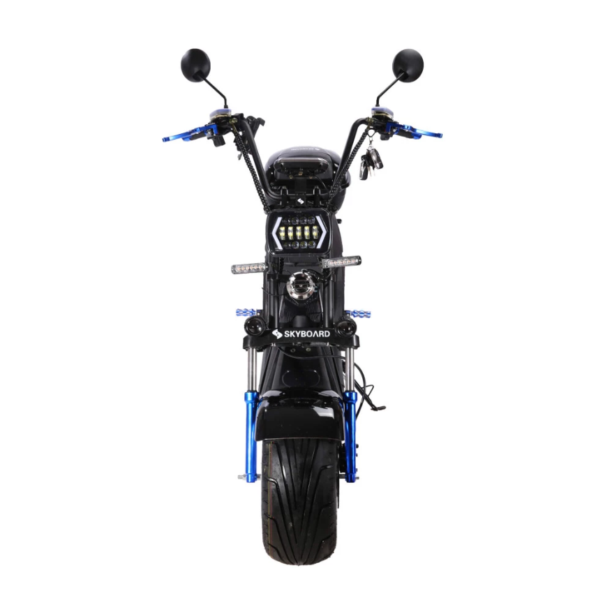 Электроскутер CityCoco Skyboard BR30-3000 (Don) – инновационный вариант скутера с литыми дисками. Первое, что понравится ездоку, скорость и простота управления, комфорт передвижения по городской местности. Приемлемая стоимость, оригинальная начинка и дизайн приятно дивят покупателей. Технические характеристики станут настоящим сюрпризом. Из особенностей электроскутер производитель выделяет такие.