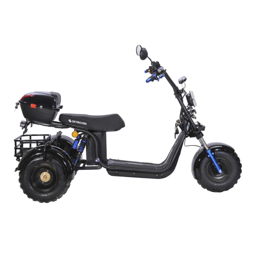 Электроскутер CityCoco SKYBOARD BR40-3000 OFF-ROAD Trike черный - электроскутер нового поколения с внушительной вездеходной колесной частью, способен преодолевать препятствия по бездорожью, делать езду комфортной по городской местности и парковой зоне. Электробайк представлен стильным дизайном, заметный в качестве участника дорожного движения.