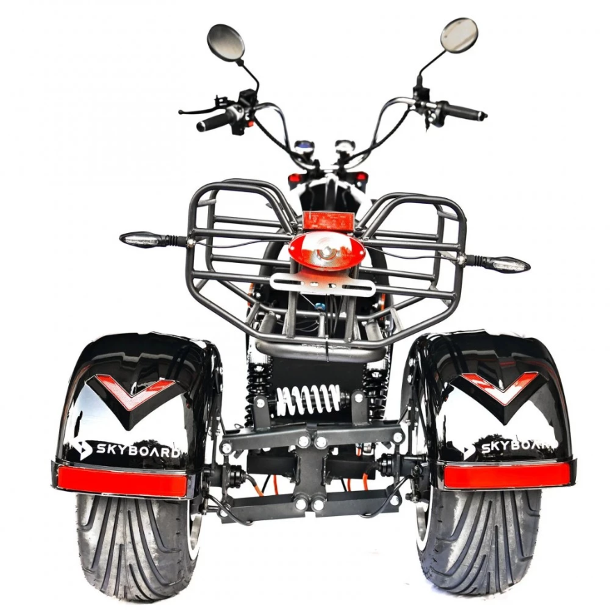 Трехколесный гибрид рассчитан для езды в пределах города и частного сектора. При мощности мотор-колес в 2000 Вт каждое модель способна развить скорость до 73 км/час и преодолеть расстояние до 49 км. Техника оснащена объемной корзиной, удобной для клади. Своевременность остановки гарантирована наличием профессиональной гидравлической тормозной системой. Удобство движения обеспечены большим комфортабельным седлом, повторяющим анатомические части тела и широкой платформой для ног. Практический опыт пользователей доказывает, усталость и проблемы с позвоночником при дальней езде исчезают.