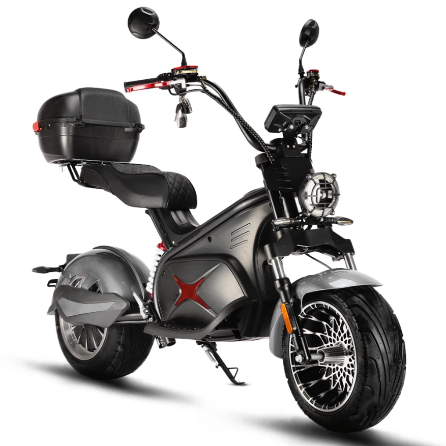 Перед покупкой электроскутера производитель настаивает обратить внимание на преимущества: скоростные параметры, комфорт и безопасность передвижения. При мощности электродвигателе в 5000 Вт способна развивать скорость авто – до 85 км/час. Накатистые 12-дюймовые колеса без труда преодолевают препятствия. Выглядят мощными, легко сцепляются с разными видами грунта. Комфорт езды гарантирован удобным мягким сиденьем, которое рассчитано на продолжительную езду без ощущения усталости и проблем с позвоночником. Оснащенность модели бортовым компьютером позволяет контролировать скорость, протяженность пути и степень заряда батареи. Большая светодиодная фара допускает поездки в ненастье, проблематичное время. Оснащенность зеркалами заднего вида помогает контролировать ситуацию на дороге. Для оформления покупки электроскутера без переплат и посредников, предлагаем связаться с нашим оператором.