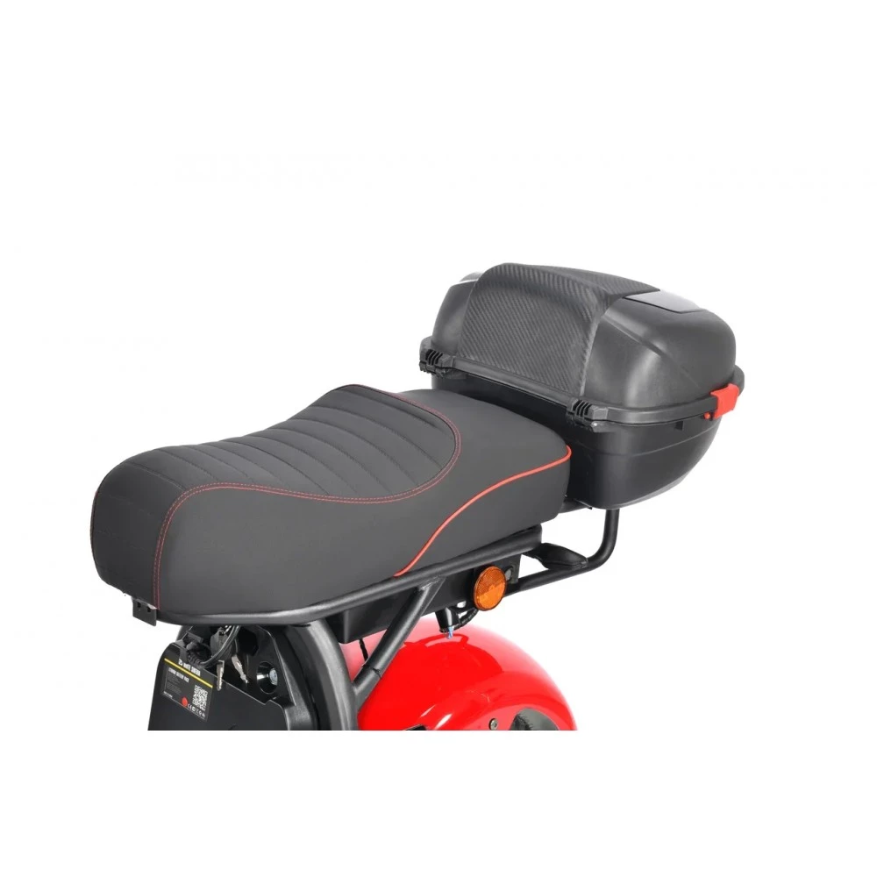 Технические характеристики черного электроскутера представлены такими параметрами: мощность – 2500 Вт, емкость литий-ионного АКБ - 1260 Wh, максимальная скорость – 50 км/час, максимальная продолжительность движения на одной подзарядке. Комфортное двухместное сиденье не утомляет, не вызывает перенапряжение позвоночного столба. Из других преимущественных характеристик стоит выделить прорезиненные ручки, наличие переднего и заднего тормоза, делающими движение безопасным для ездока и техники. При покупке электроскутера клиенты могут рассчитывать на гарантию производителя.