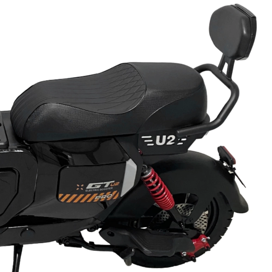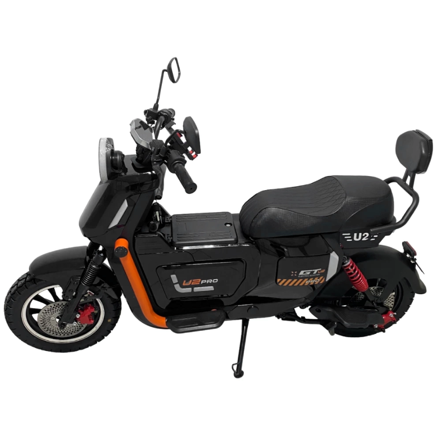 Электроскутер GT U2 PRO в черном исполнении — это сочетание мощности и элегантности. Двигатель 1500W и максимальная скорость 70 км/ч позволяют уверенно передвигаться по дороге. С запасом хода до 70 км и аккумулятором 30Ah, вы можете наслаждаться длительными поездками без подзарядки. Скутер поддерживает нагрузку до 160 кг, что позволяет взять с собой пассажира, для которого предусмотрены отдельные подножки. Дисковая гидравлическая тормозная система обеспечивает надежное торможение, а подвеска спереди и сзади сглаживает неровности дороги. Большая фара освещает путь в темное время суток, а современный дизайн подчеркнет ваш стиль.