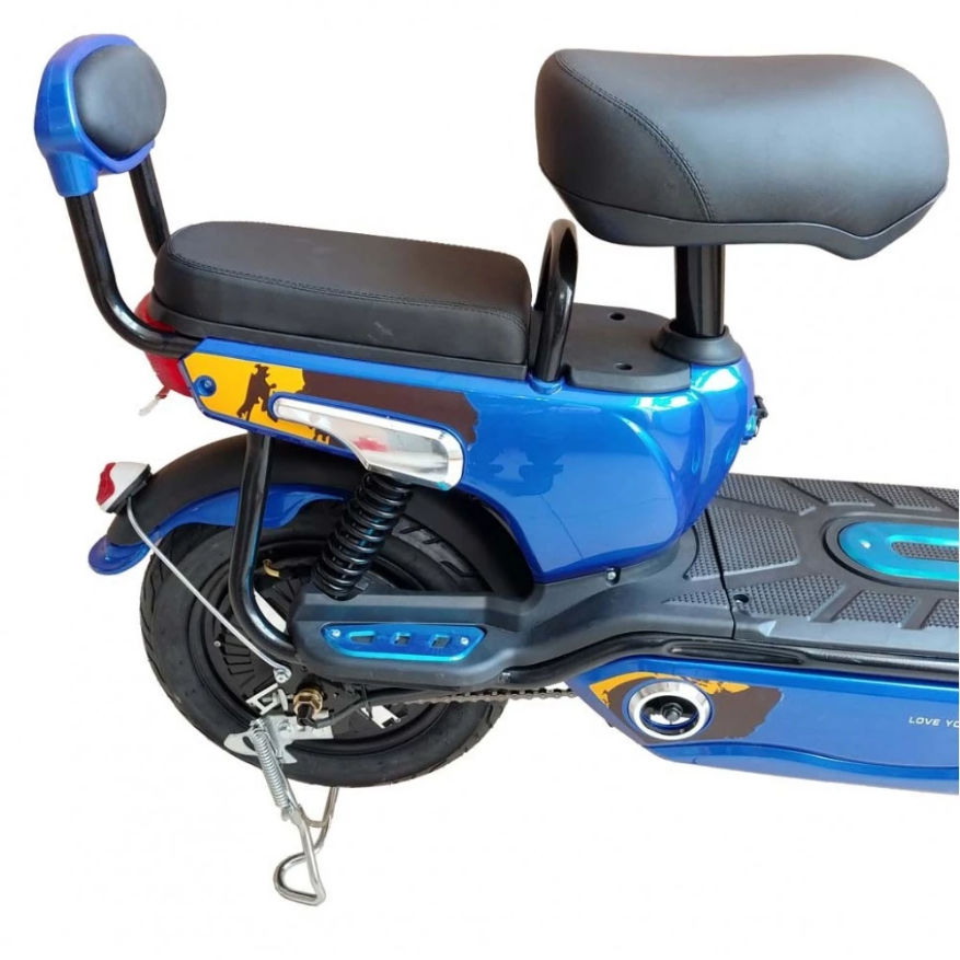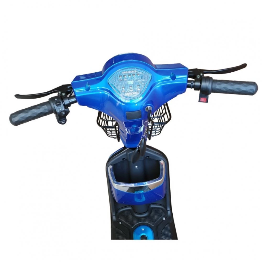 Питание на современный движок (500 Вт) подается от брендовой батареи Lilon (48 В и емкость 20 Ач). Улучшенные характеристики девайса позволяют разогнаться до 28 км/час. Полная защита АКБ от внешних факторов и перегрева достигается размещением ее под рамой. Батарея заряжается от обычной розетки за 6 часов, полного заряда хватит на прохождение 40 км пути.