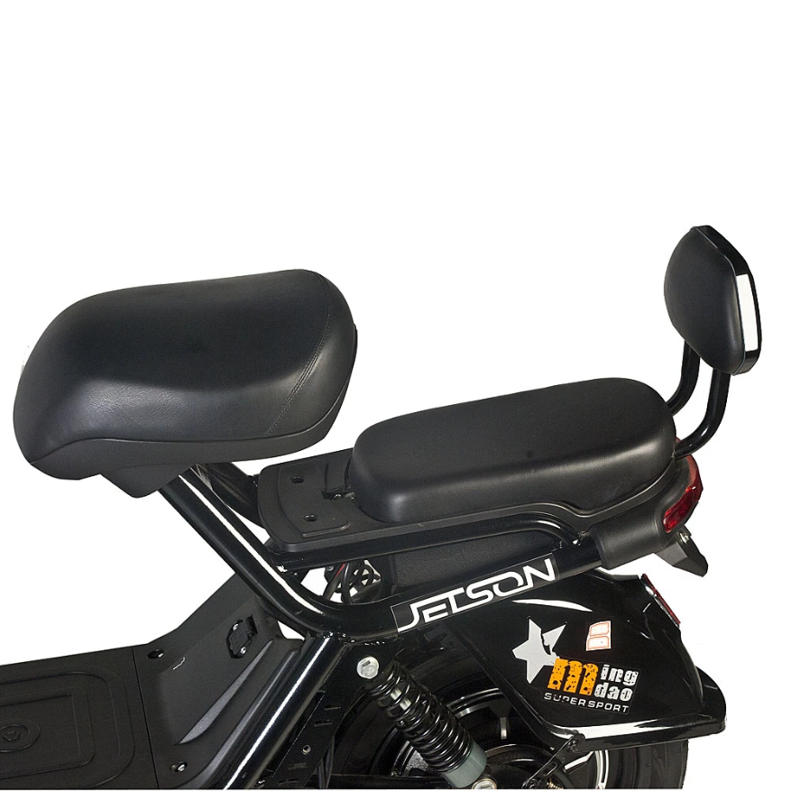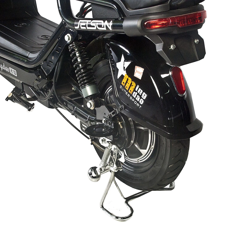 Удобная замена общественному транспорту и личному автомобилю – электроскутер GM-60 от компании Jetson. Сочетая в себе современный дизайн, динамику и комфорт, этот скутер способен проехать до 80 километров без подзарядки благодаря своему ёмкому свинцовому аккумулятору – целых 20 Ач. Батарею можно легко снять и заряжать там, где вам удобно. 450-Ваттный электромотор способен разогнать скутер до 50 км/ч даже при наибольшей возможной нагрузке – 180 килограмм. Мягкое, широкое и прочное сидение из эко-кожи с прямой посадкой делает самые долгие поездки на электроскутере приятными как для водителя, так и для пассажира. Тормоза скутера – барабанного типа и спереди, и сзади – срабатывают эффективно и без лишних рывков. Мощная LED-фара и яркие габаритные огни делают передвижение на скутере ночью безопасным. Управление движением, фарами и скоростными передачами осуществляется с помощью кнопок и ручек на руле. Высокопрофильные, 16-дюймовые колёса спокойно проезжают через любые препятствия на городских дорогах. В комплекте Jetson GM-60 идут корзина для перевозки вещей, пассажирское седло и сигнализация.