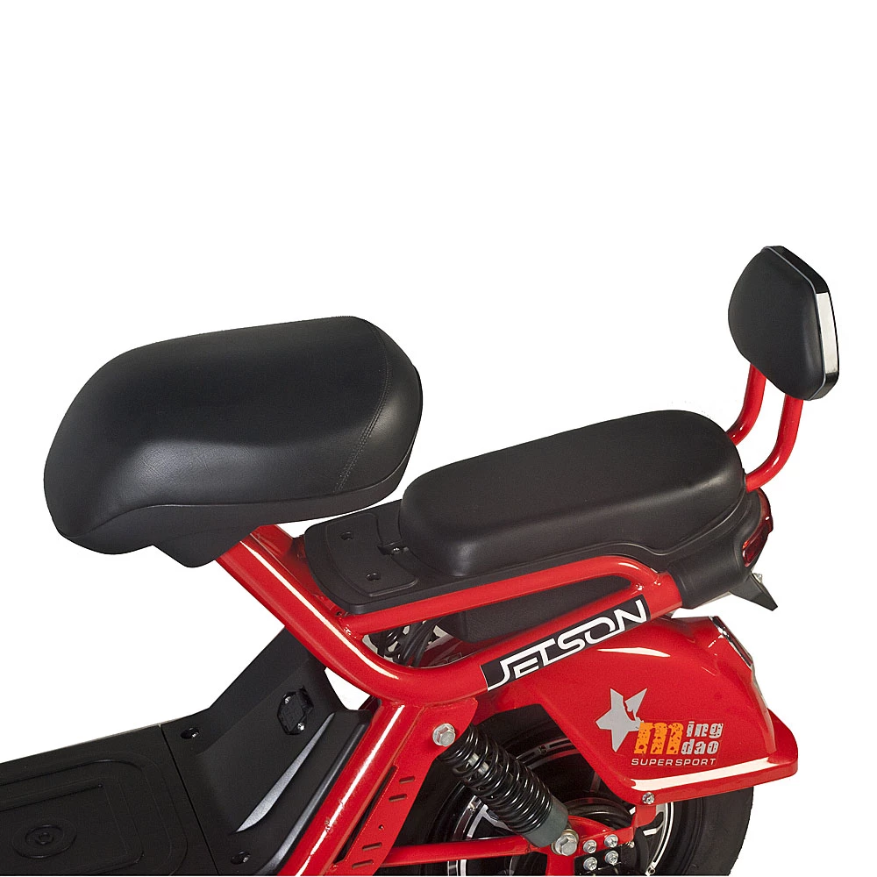 Электроскутер Jetson GM-60 – одно из лучших средств передвижения по городу. Он совмещает себе скорость и комфорт. Широкое, толстое сидение с прямой посадкой из прочной и долговечной эко-кожи прекрасно подходит для длительных поездок. На руле электроскутера располагаются понятные кнопки управления светом и переключения передач, анатомические рычаги тормоза и ручка, выполненная из цепкой резины. Практичные барабанные тормоза останавливают GM-60 плавно, но эффективно. Также плавности движения способствуют широкие 16-дюймовые колёса, которые с лёгкостью преодолевают различные неровности и придают скутеру манёвренности. Поездки в ночное время сделают безопаснее мощные габаритные огни и яркий LED-фонарь, расположенный на руле. Электромотор мощностью 450 Ватт даёт возможность разогнать скутер до 50 км/ч, а съёмная свинцовая аккумуляторная батарея с ёмкостью 20 Ач позволяет проезжать до 80 километров без подзарядки. Приятным бонусом для пользователя станут корзинка для личных вещей и сидение для пассажира, идущие в комплекте со скутером.