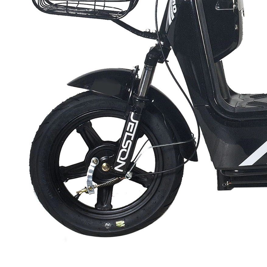 Городской электроскутер Jetson RS-20 сочетает в себе динамику и удобство. Мощный 350-Ваттный электромотор позволяет развивать скорость до 40 км/ч, а съёмный свинцовый аккумулятор ёмкостью 20 Ач увеличивает дальность хода до 80 километров на одном заряде. За плавное и эффективное торможение на скутере отвечают два барабанных тормоза. Своей манёвренностью Jetson RS-20 обязан 14-дюймовым колёсам с высоким профилем, которые с лёгкостью преодолевают различные неровности на городских и загородных дорогах. Плюсом к амортизации становится мягкое сидение из прочной и долговечной эко-кожи, а прямая спинка сделает длительное движение менее трудоёмким. На руле скутера расположены ручки тормоза анатомической формы, интуитивно понятные кнопки управления светом и КПП и ручка газа, покрытая нескользящим материалом, что делает поездку более безопасной. Яркая LED-оптика спереди и сзади делают электроскутер заметным в тёмное время суток. В комплекте к электроскутеру Jetson RS-20 идут такие полезные вещи, как корзинка для вещей, сидение для пассажира, зеркала заднего вида и сигнализация.